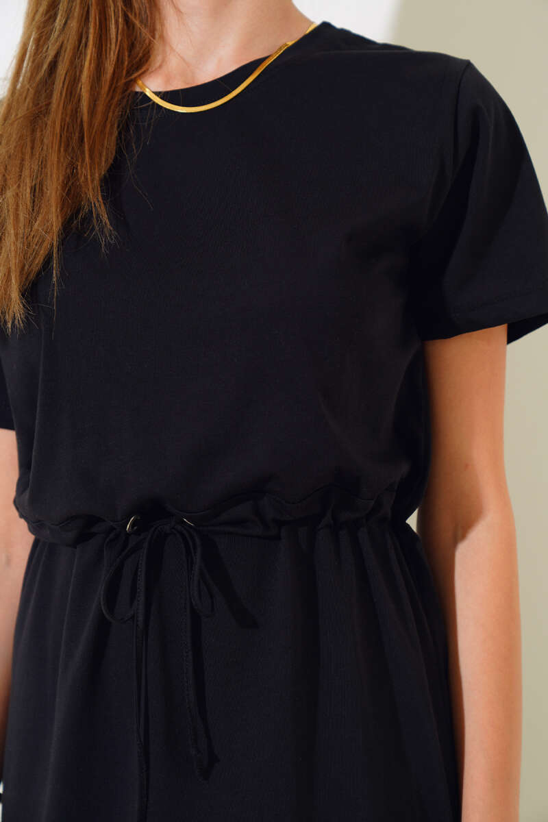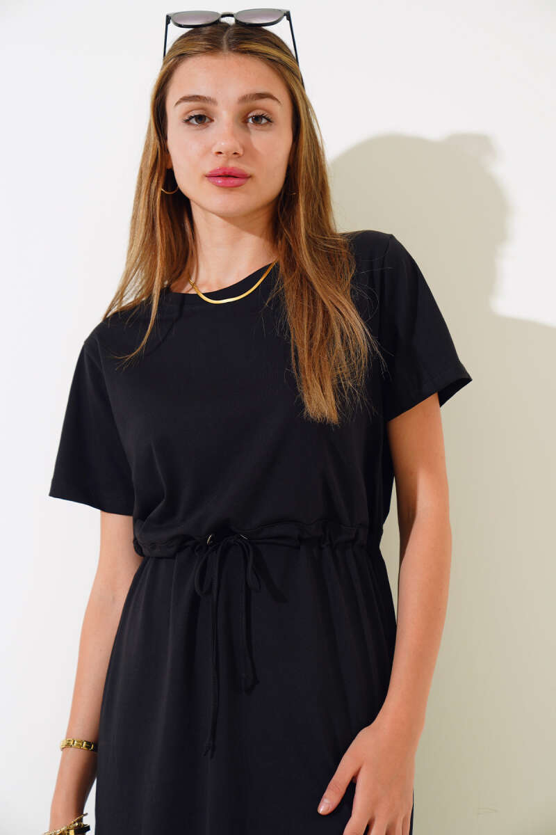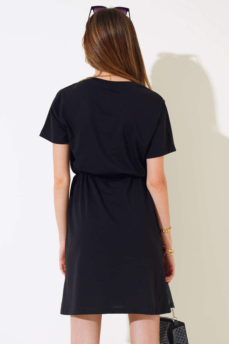 İpli Kısa Kol Elbise Siyah