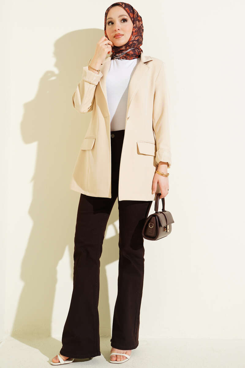 Tünelli Düğme Kap Bej