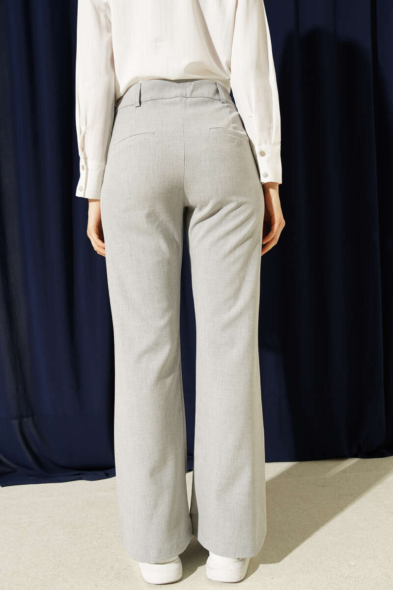 İspanyol Paça Bel Düğmeli Pantolon Gri