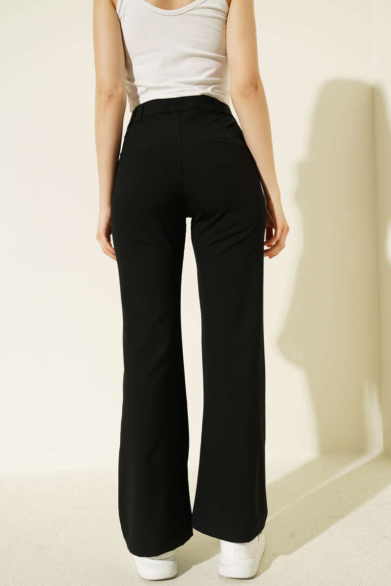 İspanyol Paça Bel Düğmeli Pantolon Siyah