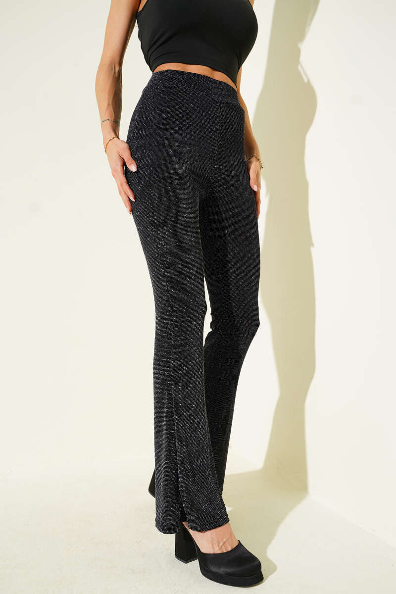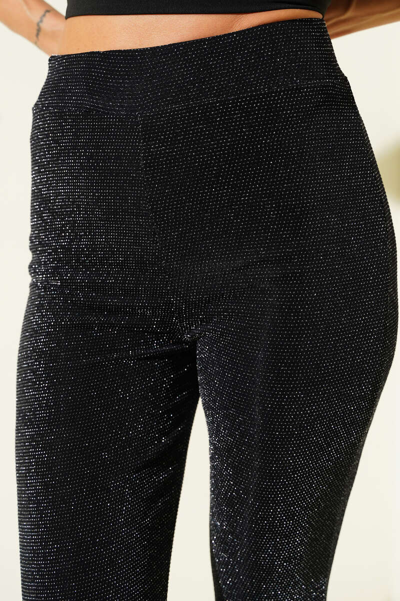 Omuz Vatkalı Simli Bluz Siyah