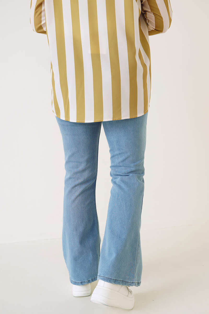 Yeni sezon büyük beden jean pantolunumuz ispanyol paçadır. Şık tasarımıyla sizlere sporitf şıklığı sunmaktadır. Düğmeli ve fermuarlıdır. Beş adet kemer köprüsü bulunmaktadır.