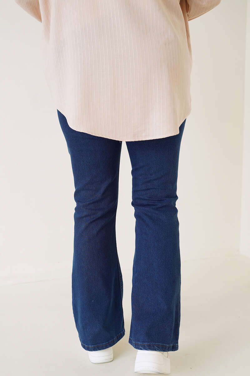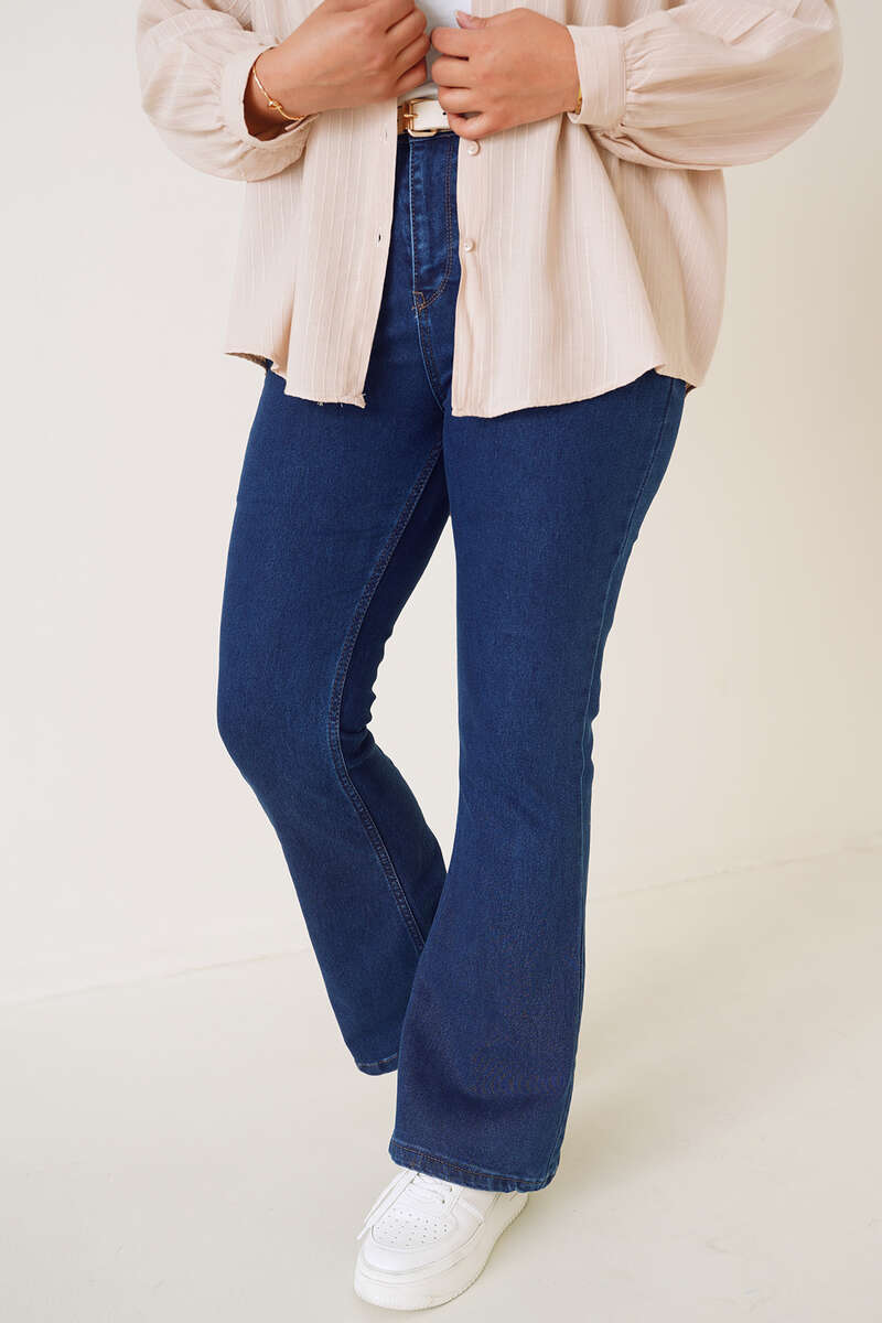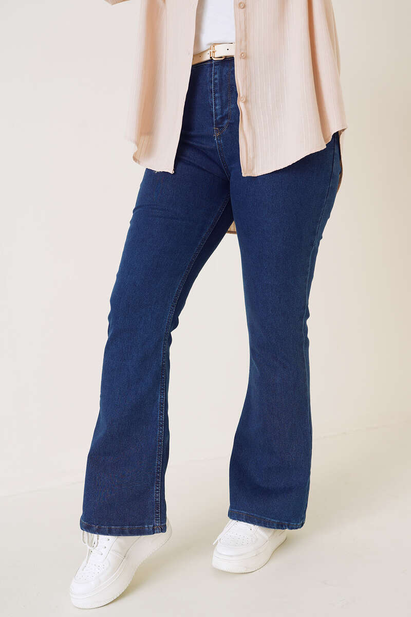 İspanyol Paça Büyük Beden Jean Pantolon Koyu Mavi