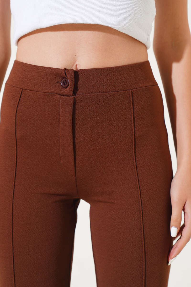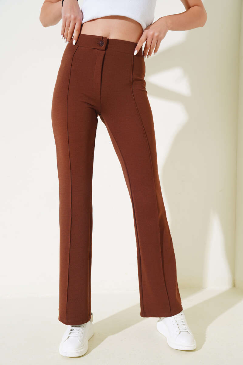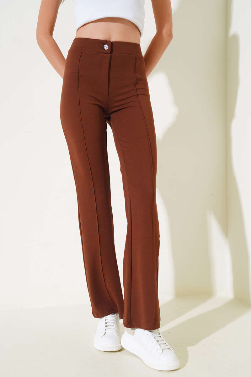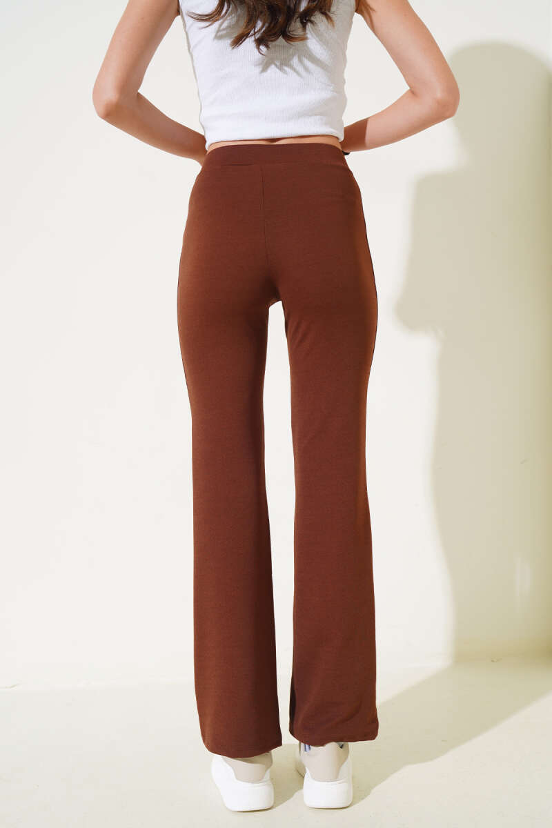 Bel Lastikli Geniş Paça Scuba Pantolon Kahve