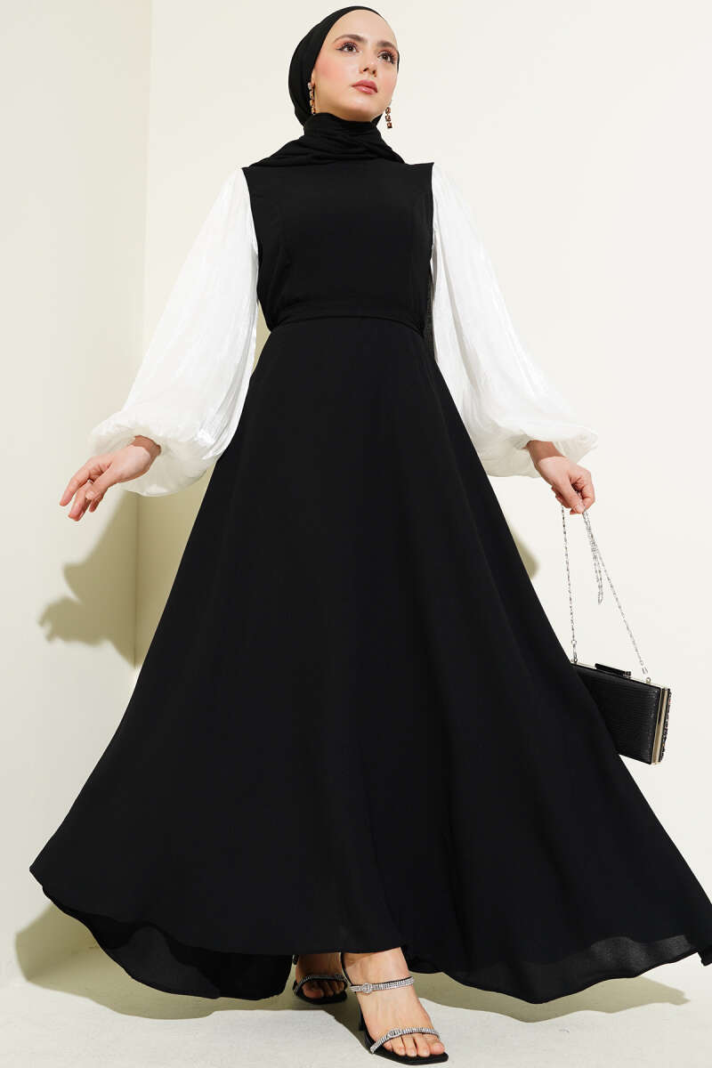Balon Kol Keten Gömlek Siyah