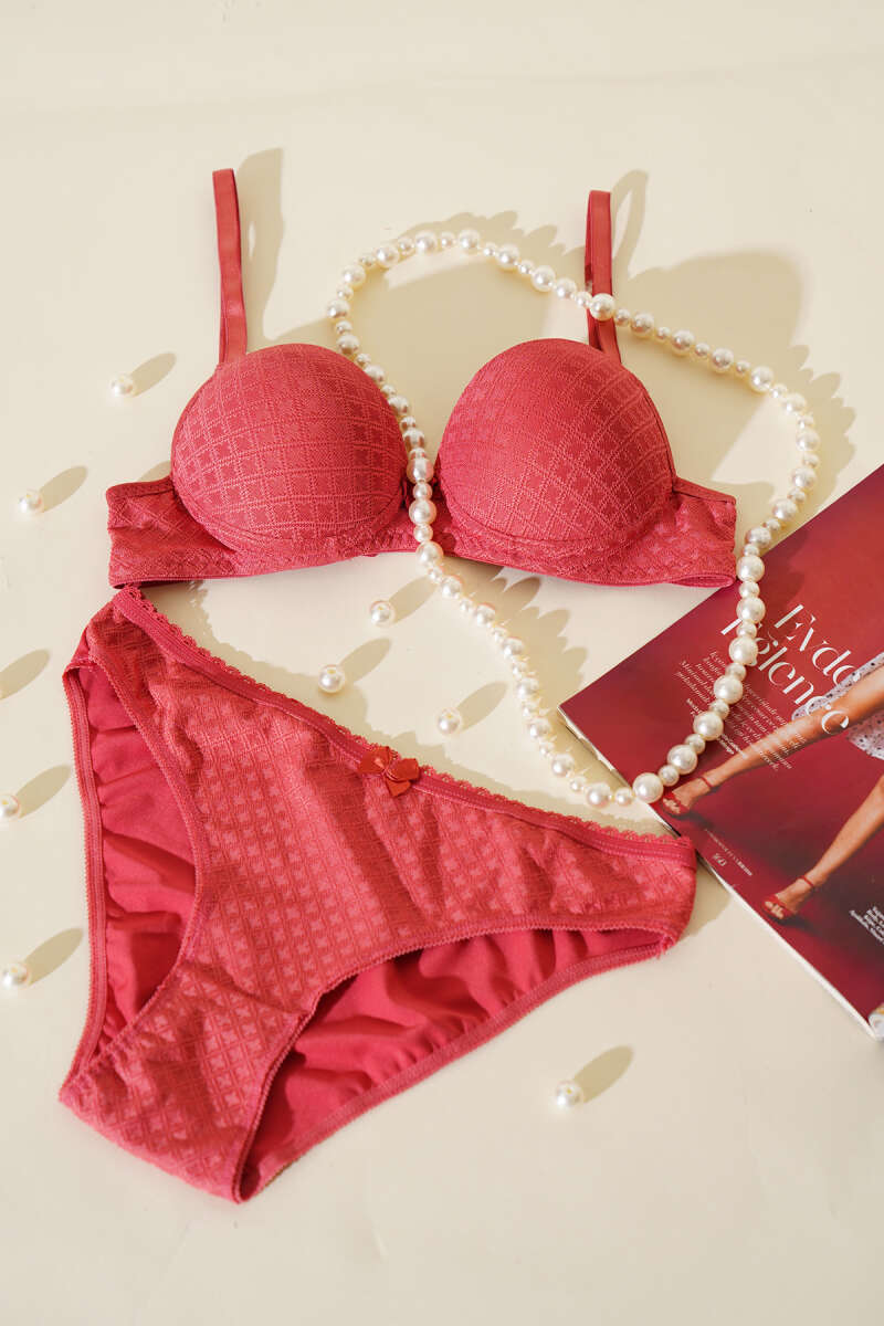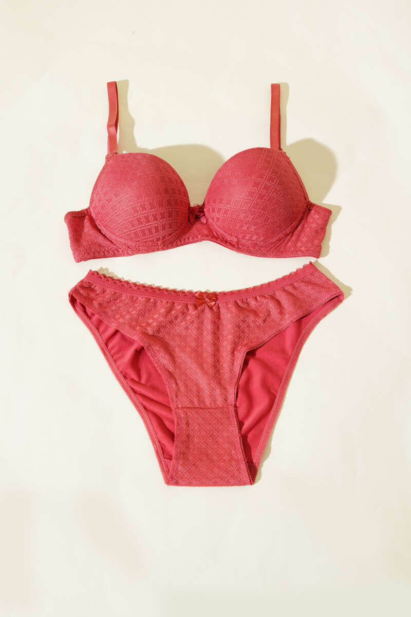 Jakar Desenli Destekli Sütyen Takım Nar Çiçeği