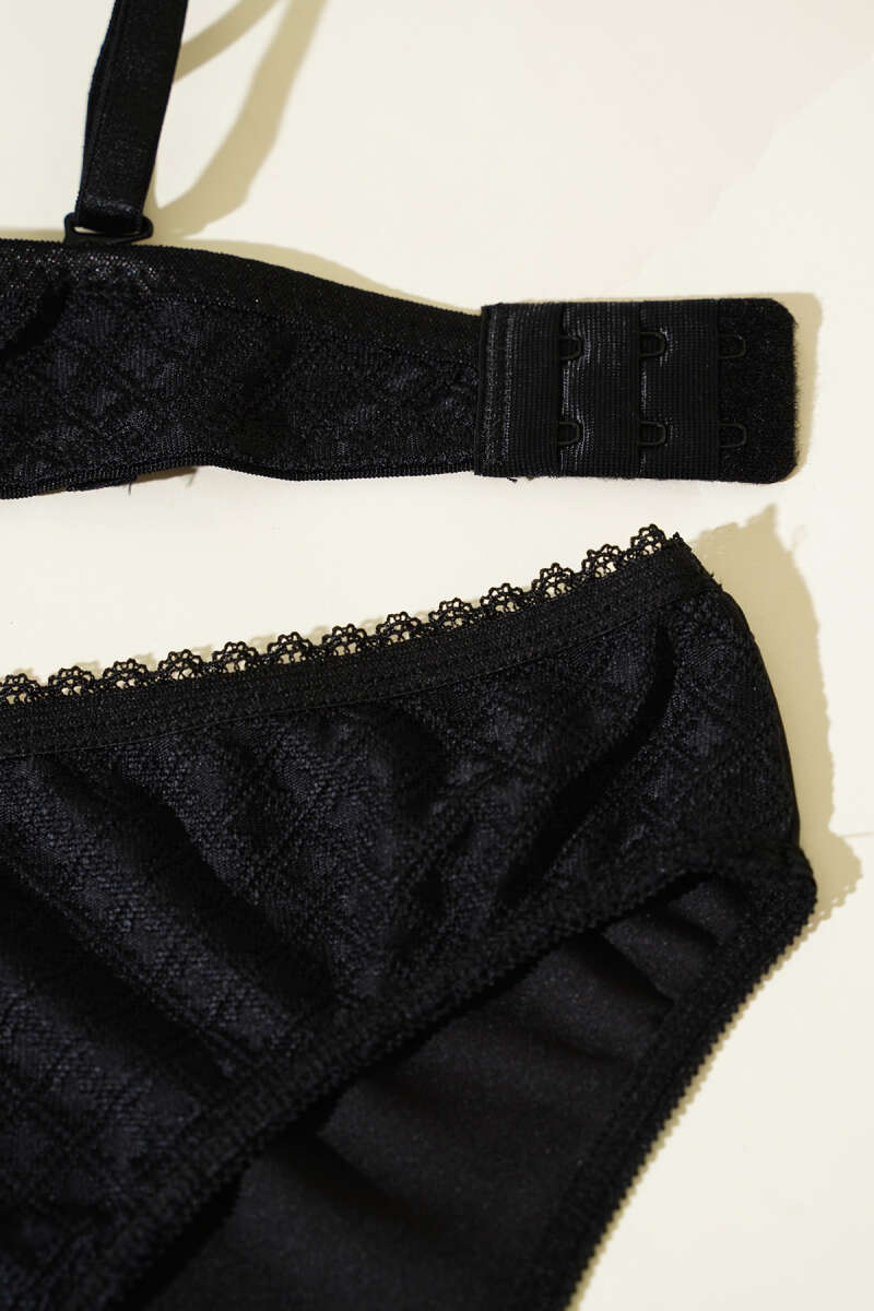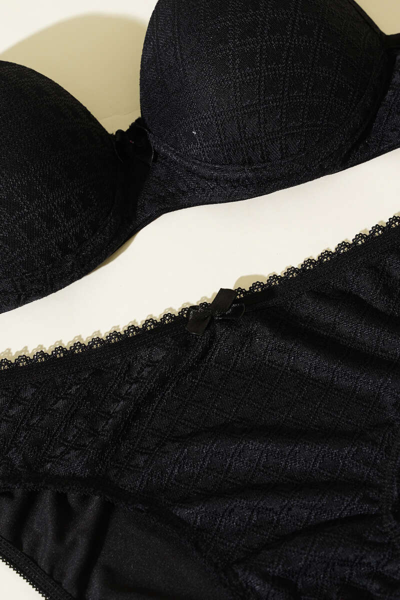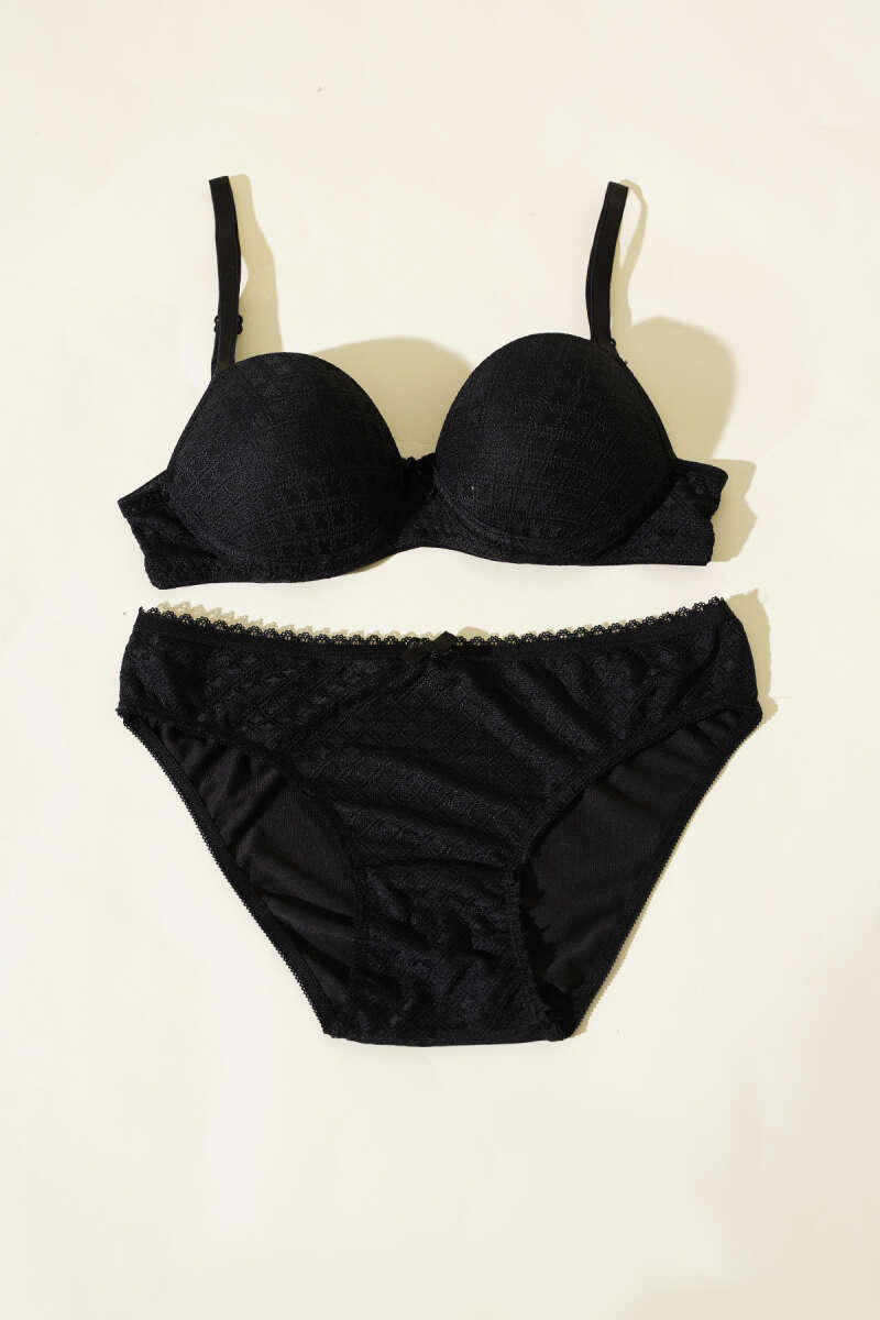 Jakar Desenli Destekli Sütyen Takım Siyah