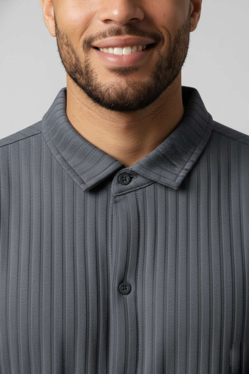 Polo Yaka Çizgili Uzun Kollu Erkek T-shirt Füme