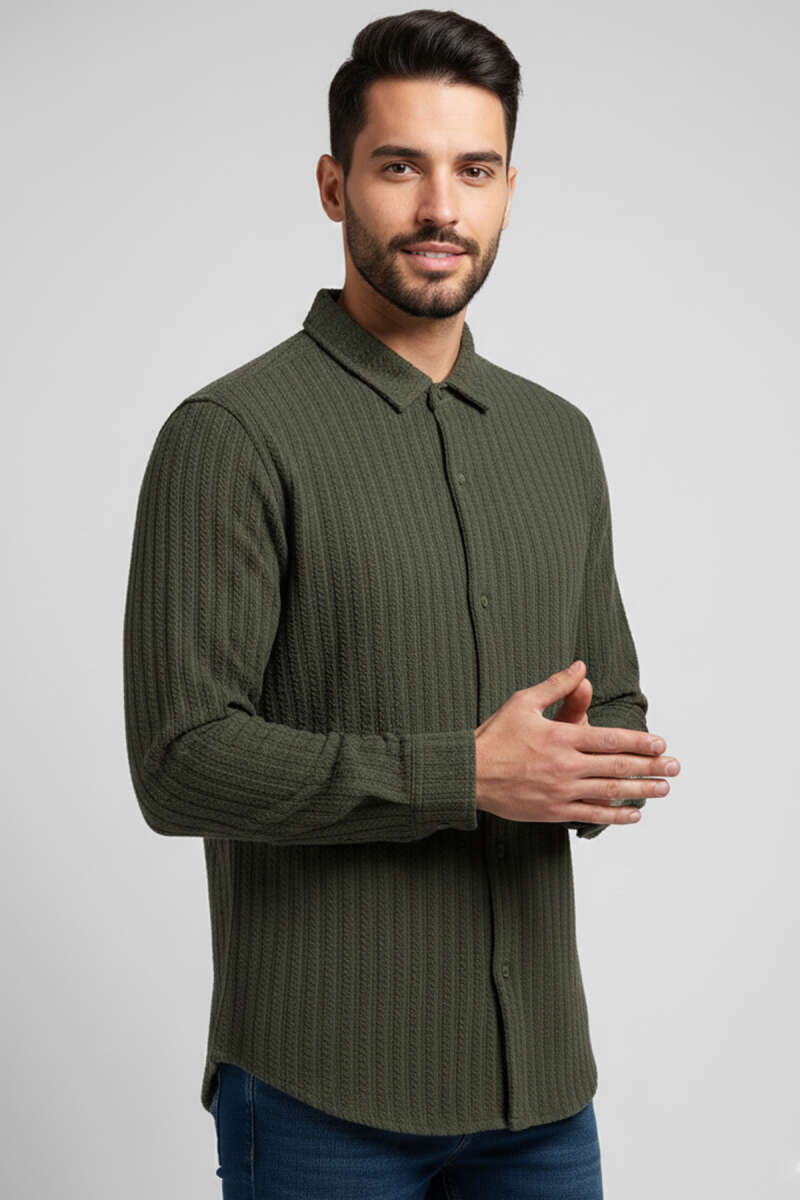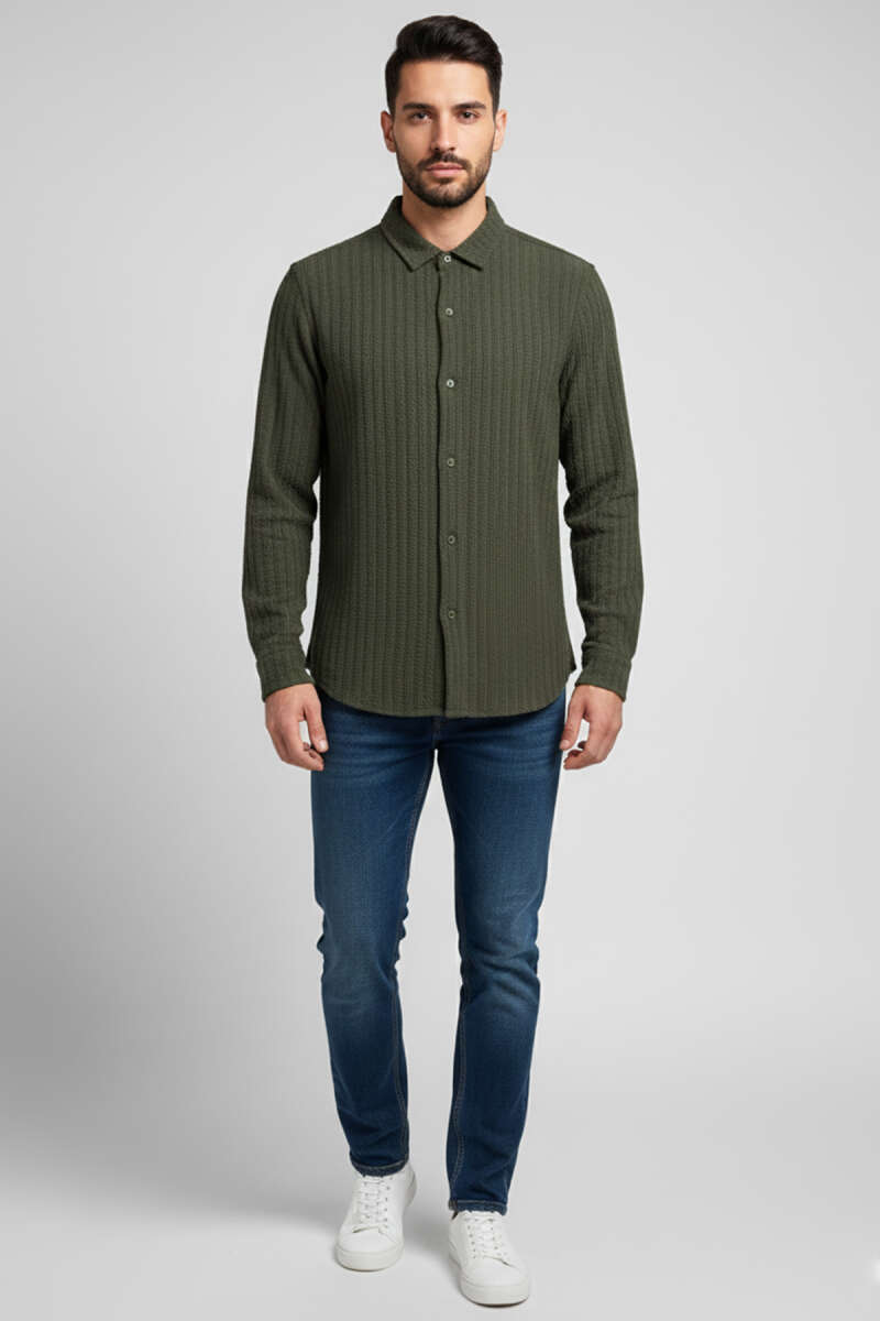 Jakar Desenli Erkek Gömlek Haki