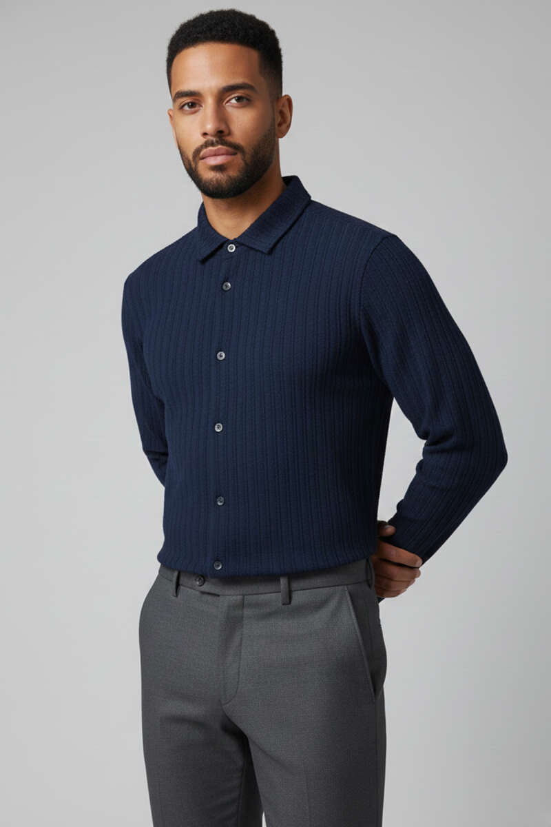 Jakar Desenli Erkek Gömlek Lacivert
