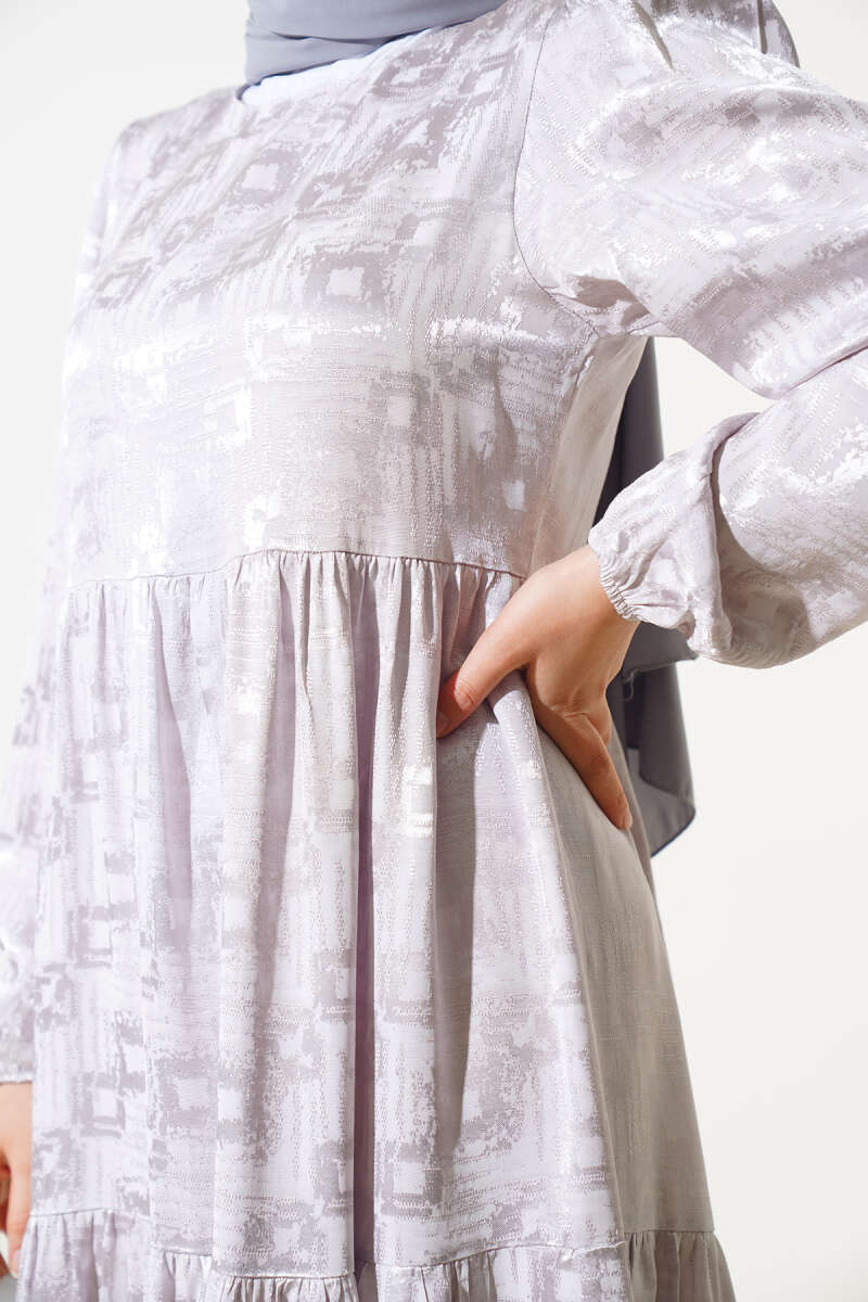 Kol Bilekleri Gipeli Desenli Elbise Mavi