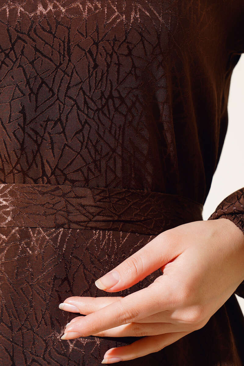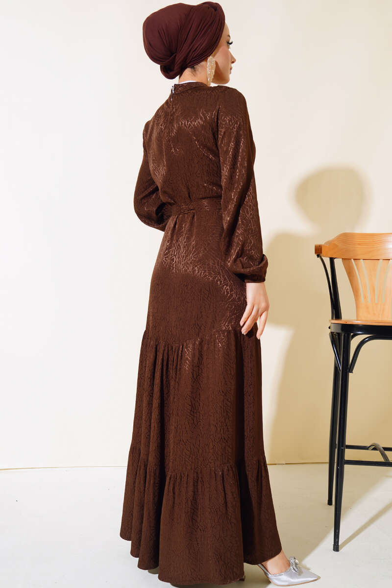 Yeni sezon elbisemiz sizlerle beraber. Elbisemiz dik yaka olup, sırtı fermuarlıdır. Kol bilekleri lastiklidir. Elbisemiz jakarlı kat modeldir. endi kumaşından kuşağı vardır. Astarsızdır. Şık ve zarif duruşuyla elbisemiz favoriniz olacak. Renk seçenekleri vardır.