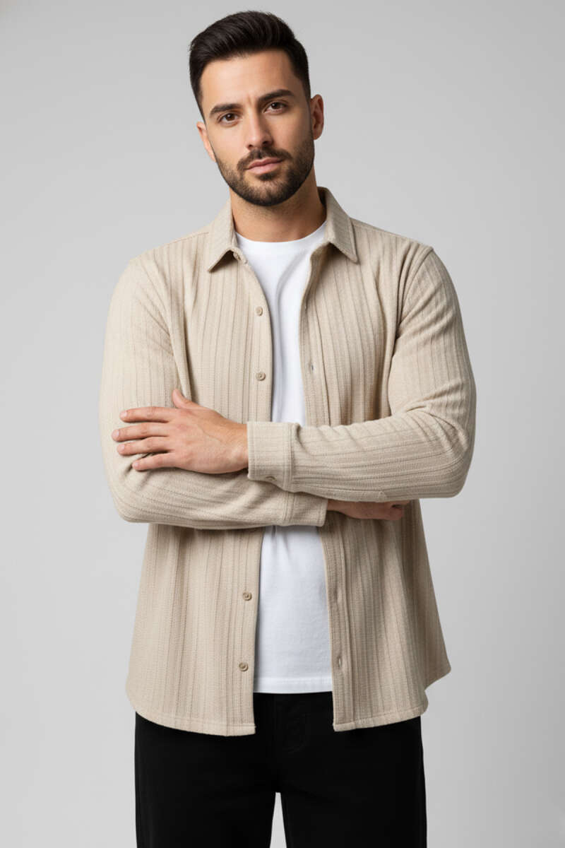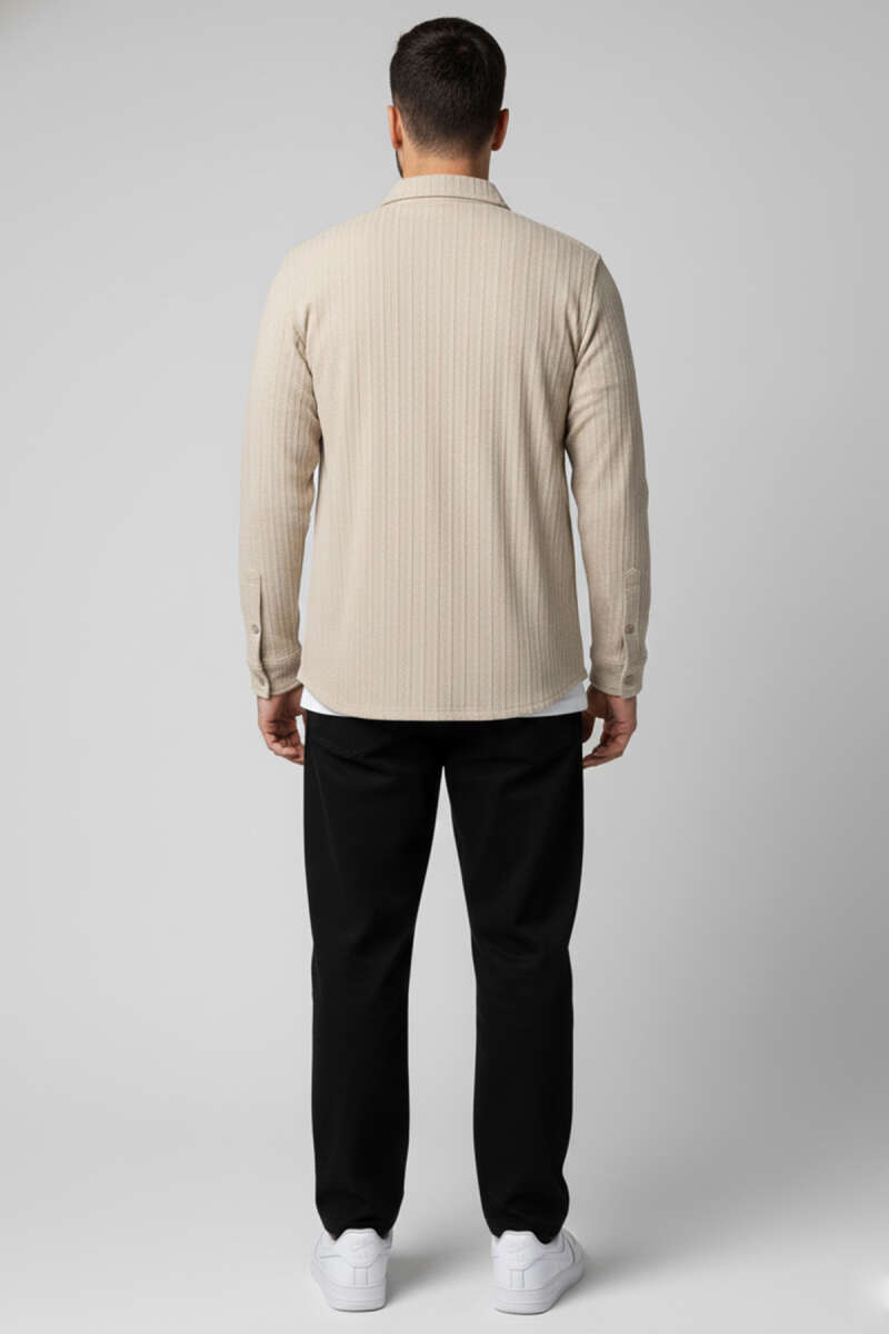 Çizgili Bilek Manşetli Erkek Gömlek Bej