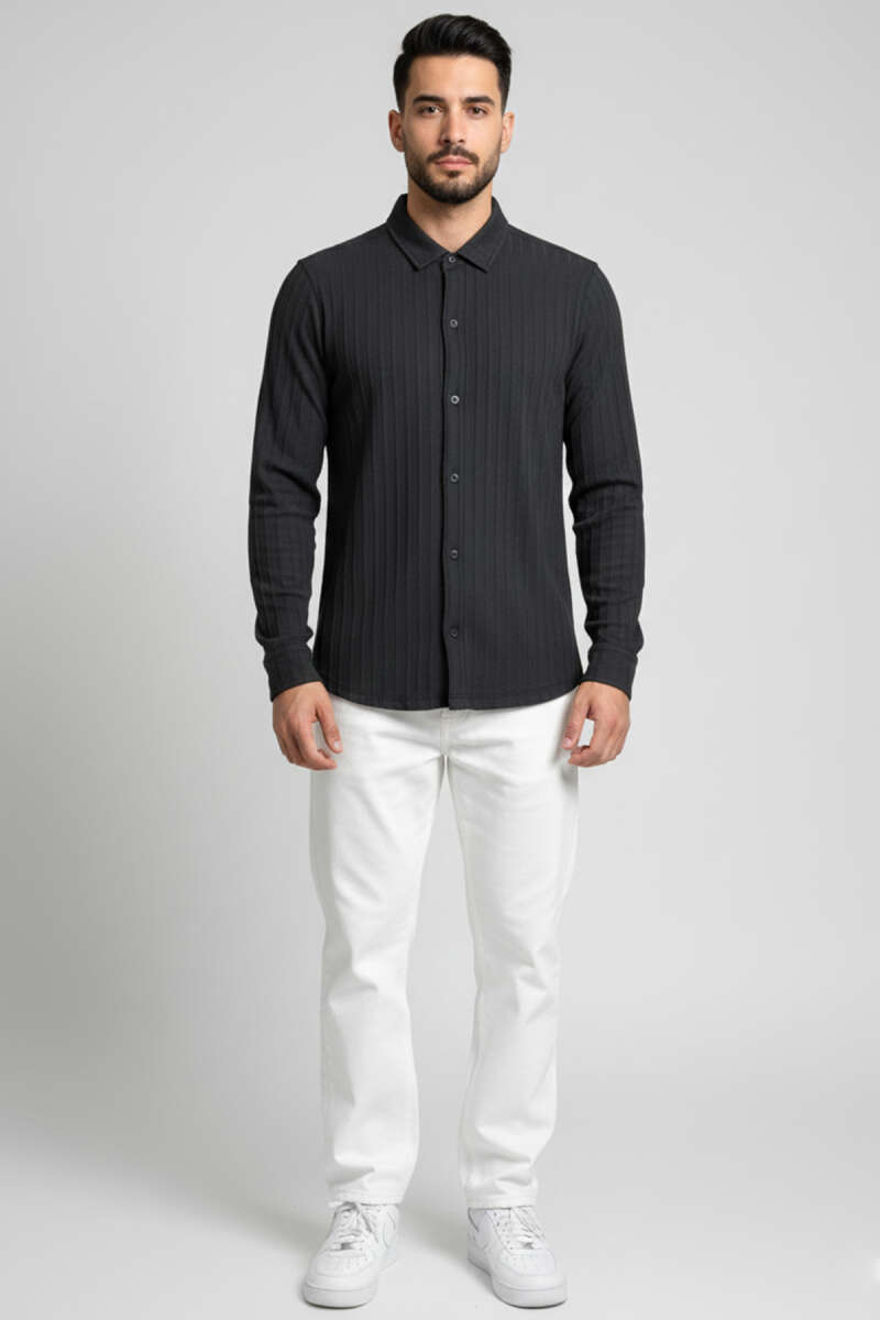 Çizgili Bilek Manşetli Erkek Gömlek Füme