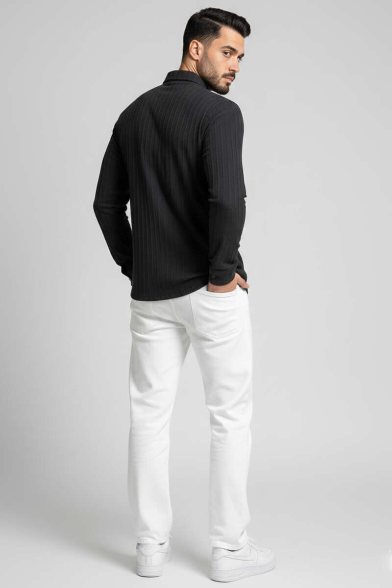 Çizgili Bilek Manşetli Erkek Gömlek Beyaz