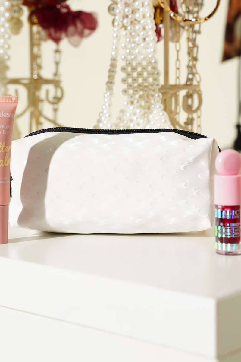 Jakarlı Fermuarlı Makyaj Çantası Bej