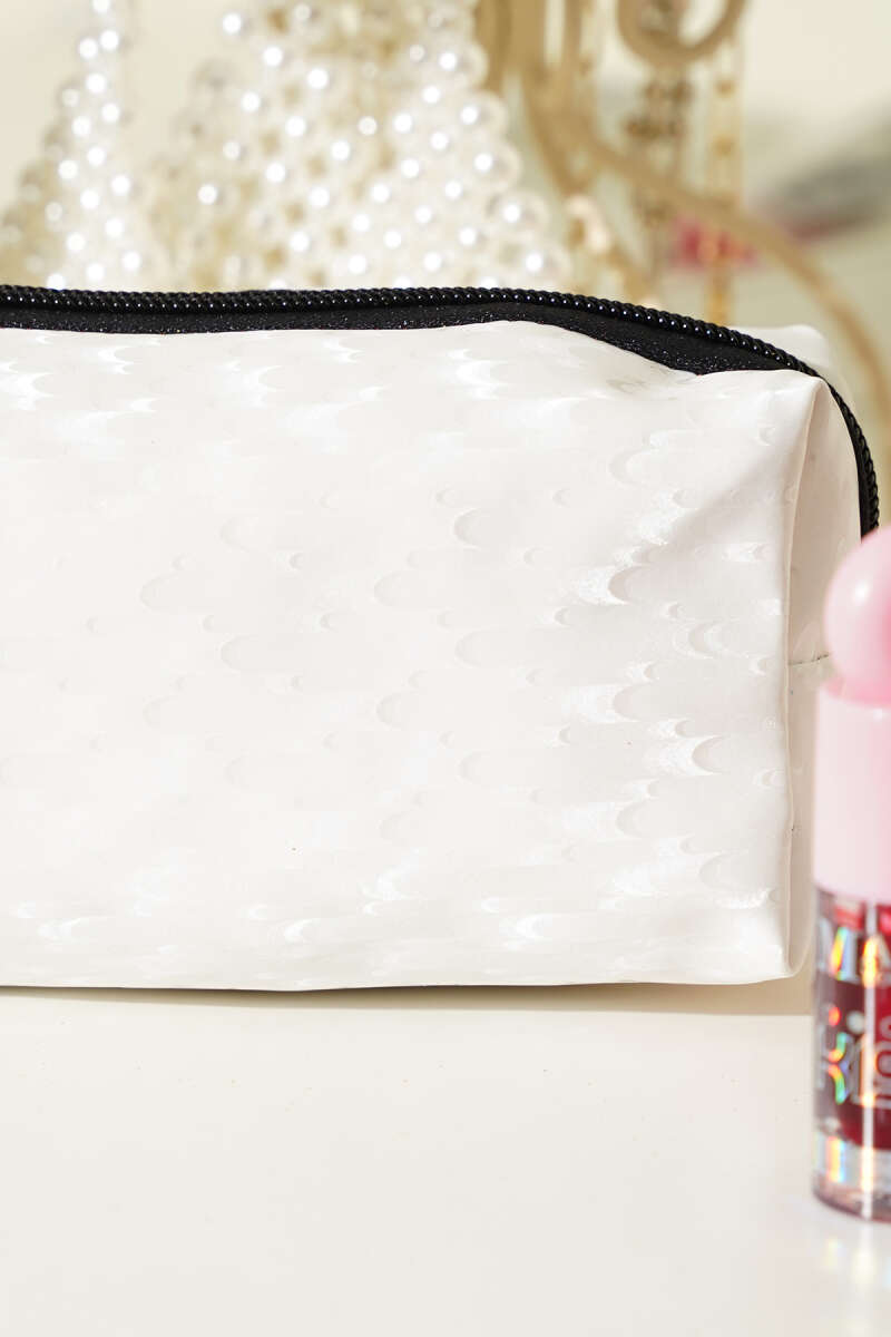 Jakarlı Fermuarlı Makyaj Çantası Pudra