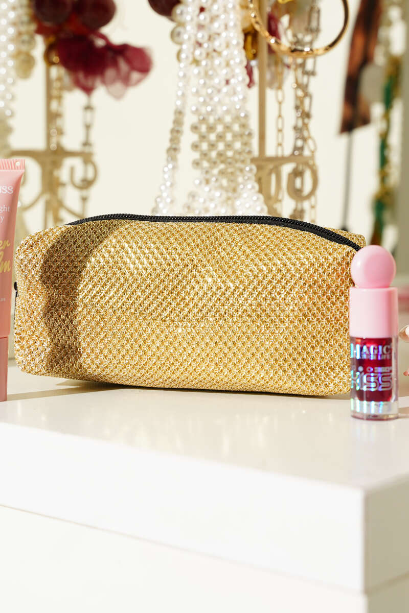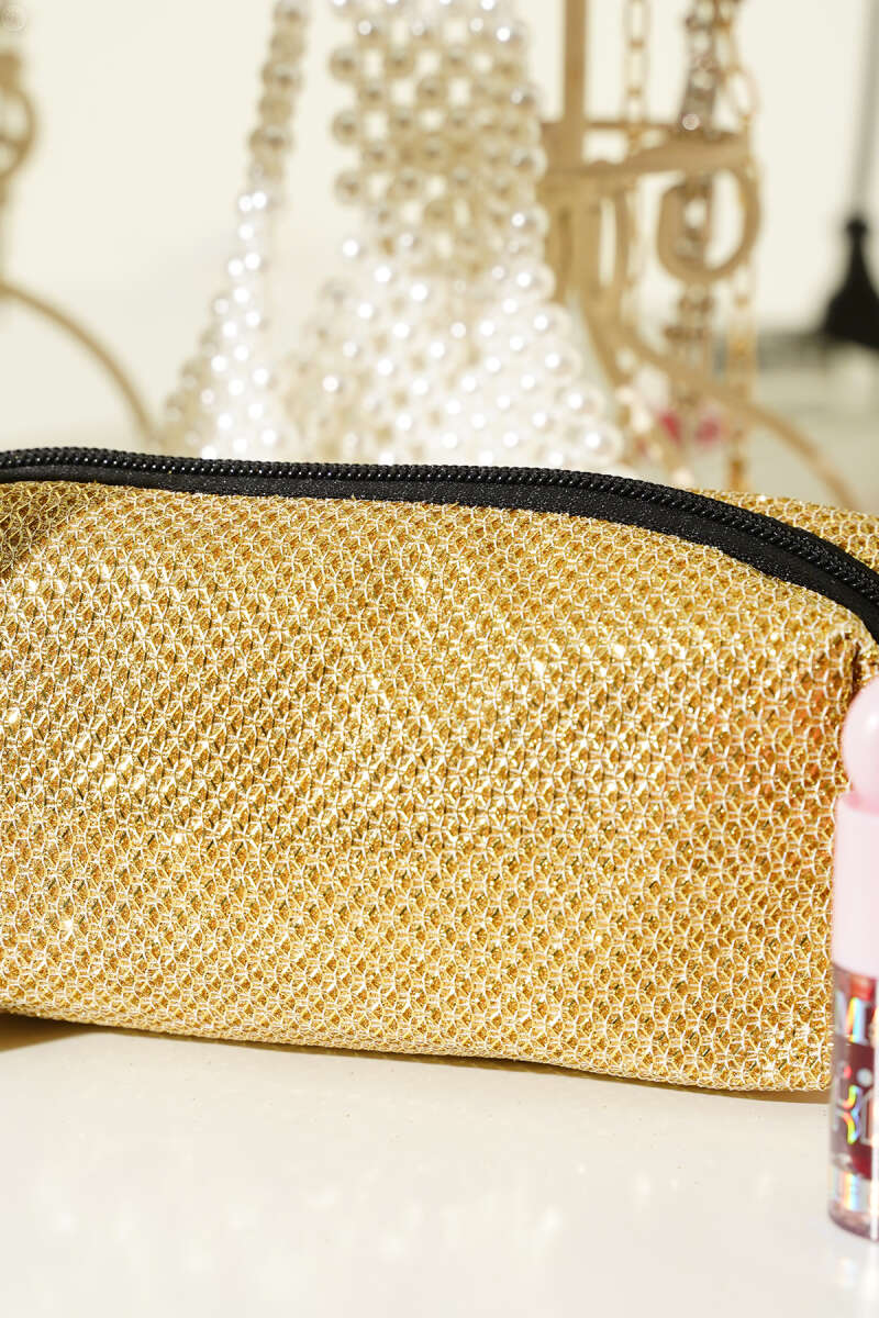 Jakarlı Fermuarlı Makyaj Çantası Pudra