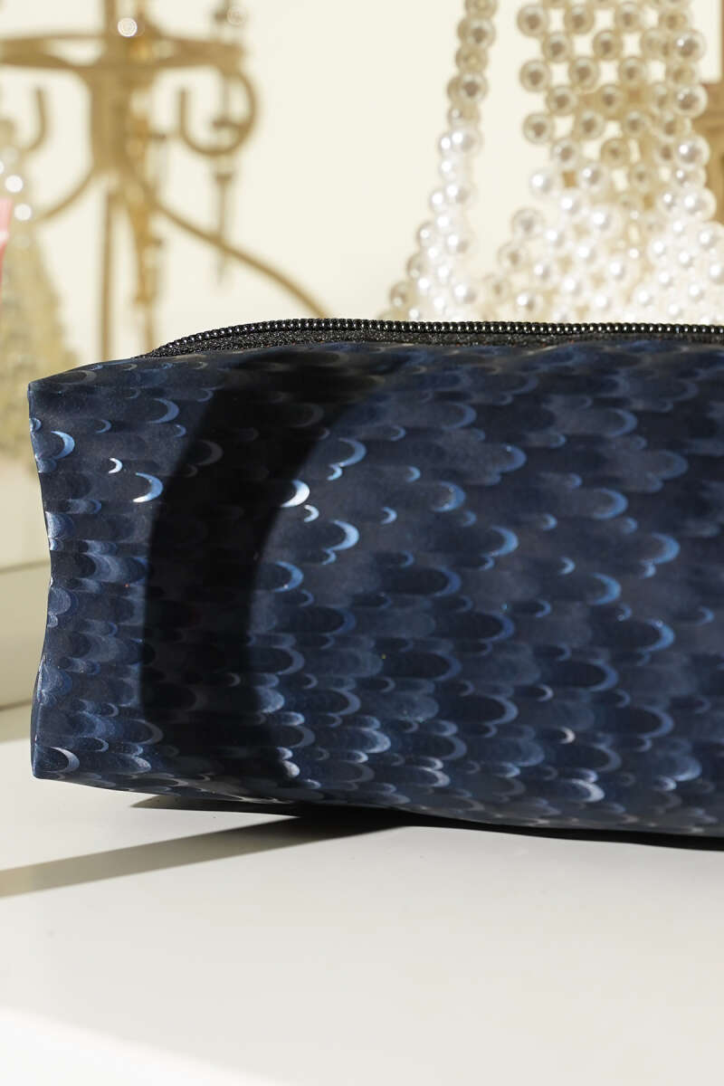 Jakarlı Fermuarlı Makyaj Çantası Pudra