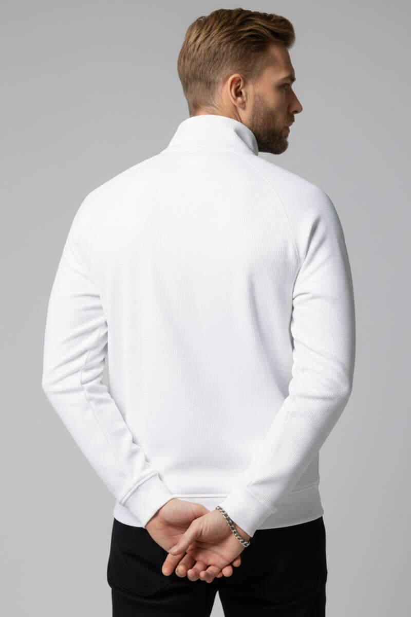 Polo Yaka Fermuarlı Erkek Sweatshirt Siyah