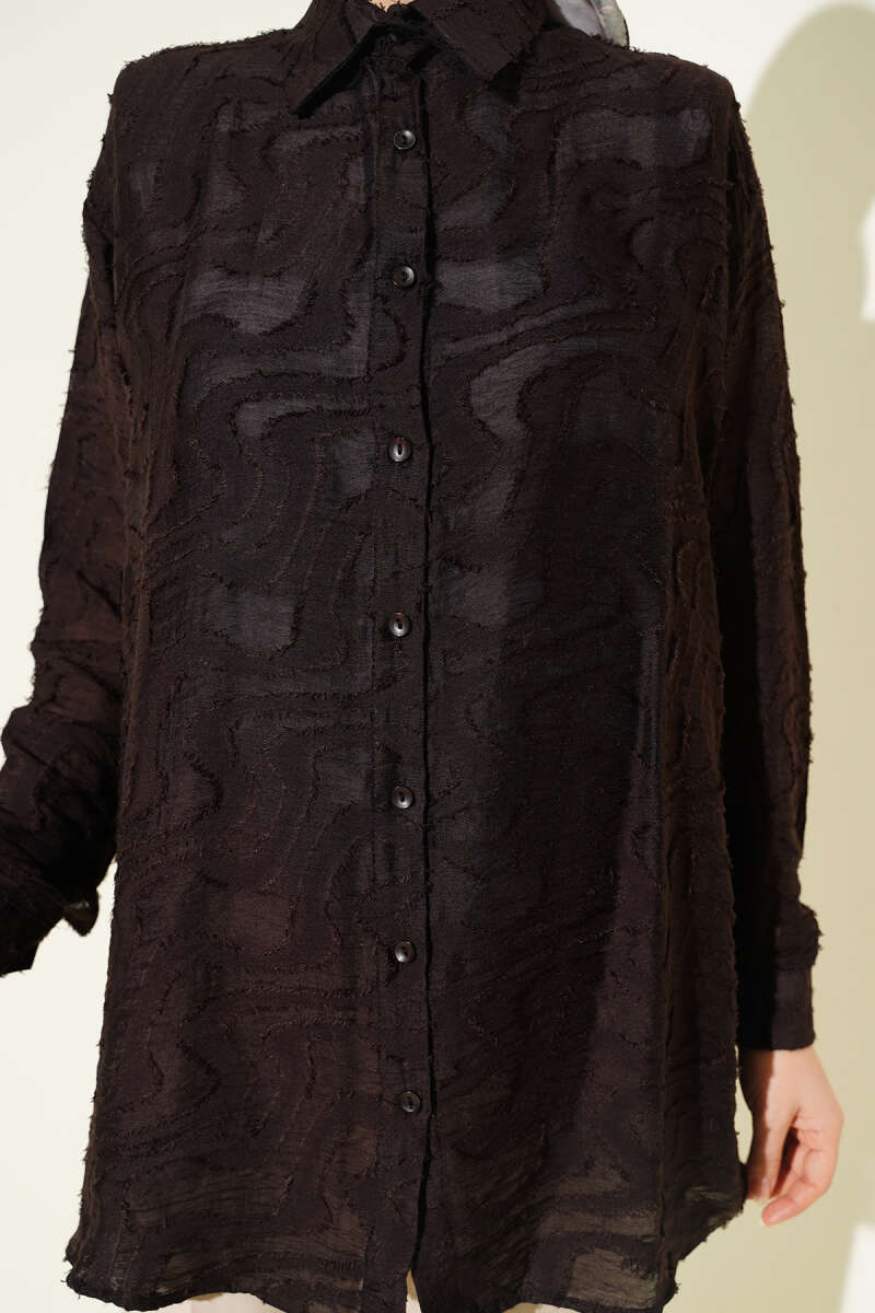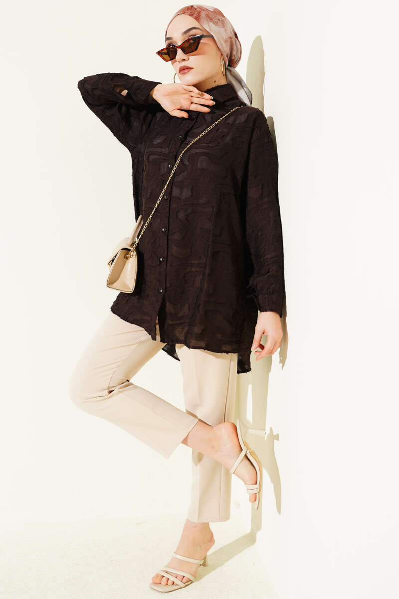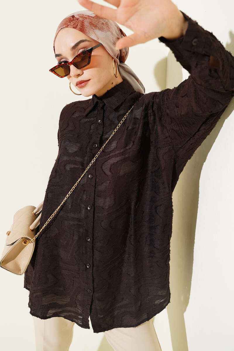 Jakarlı Püskül Detaylı Gömlek Acı Kahve