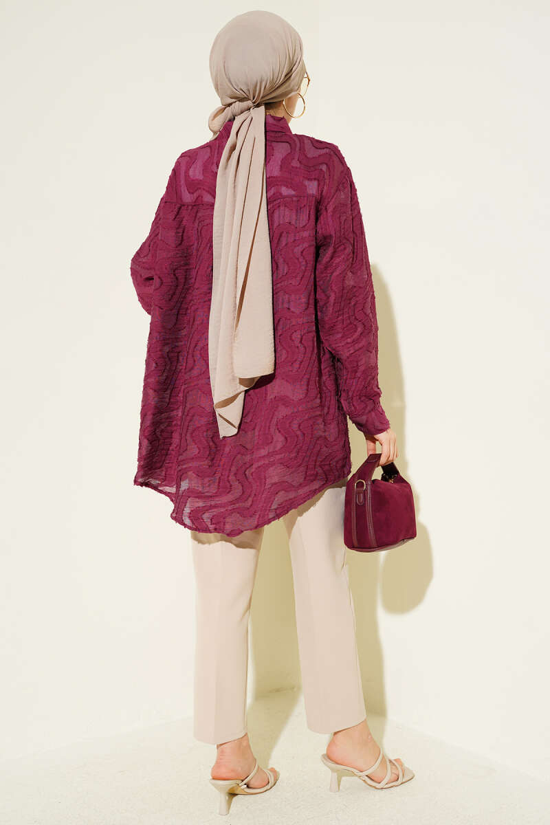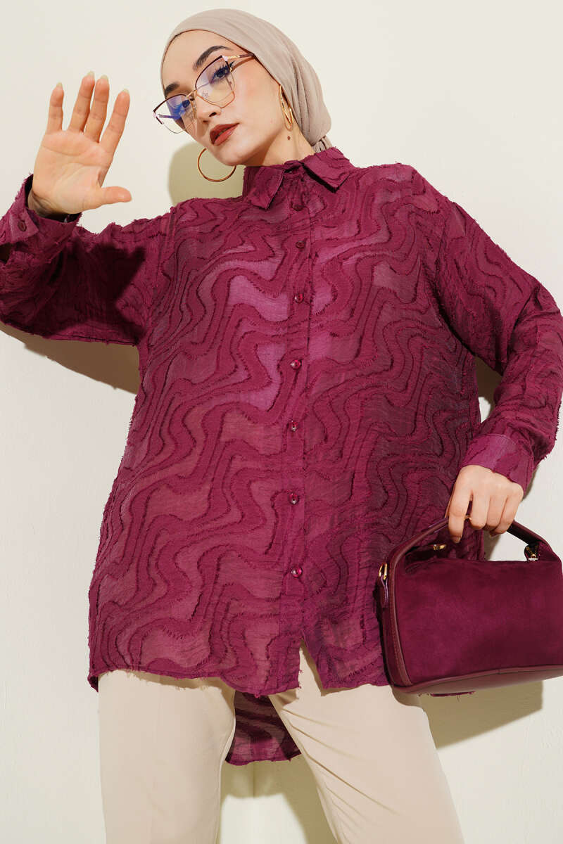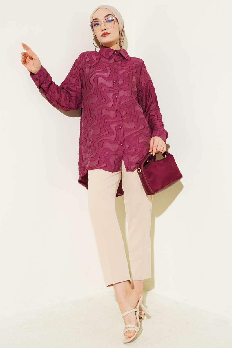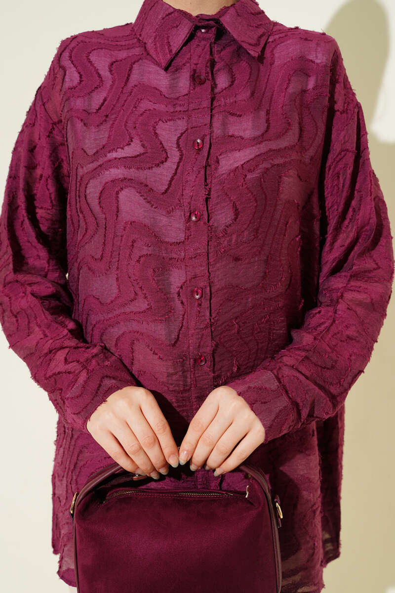 Jakarlı Püskül Detaylı Gömlek Bordo