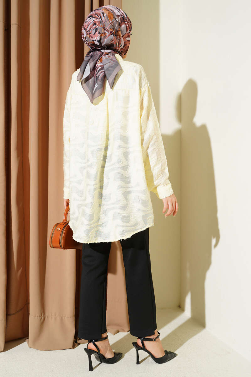 Kolları Lastikli Krinkıl Gömlek Ekru