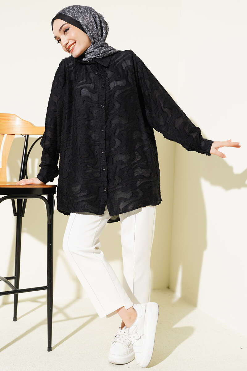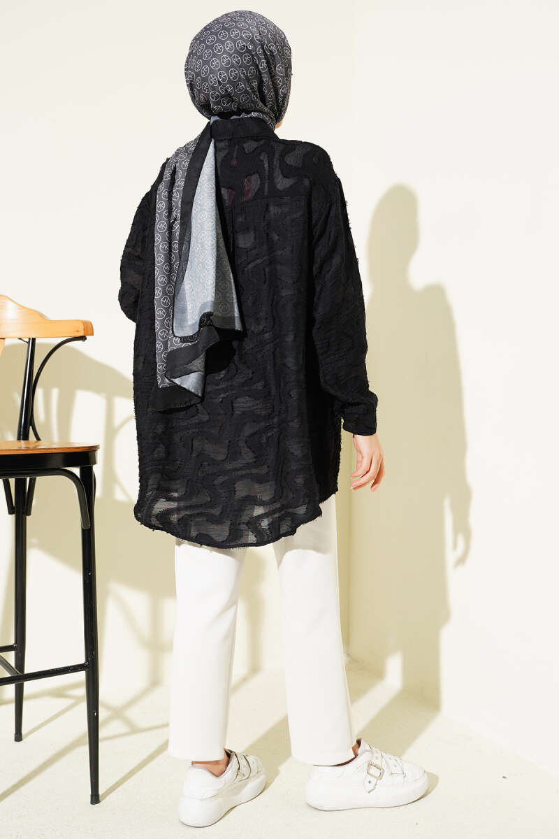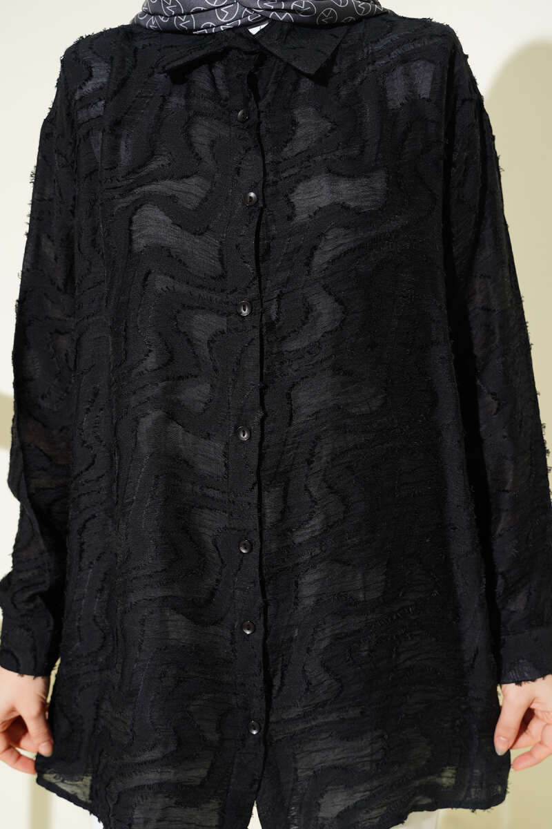 Jakarlı Püskül Detaylı Gömlek Siyah