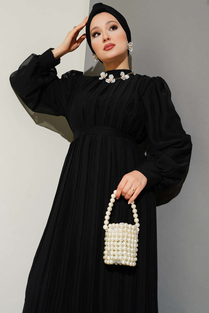 Omuz Pelerinli Taş Detaylı Abiye Elbise Siyah