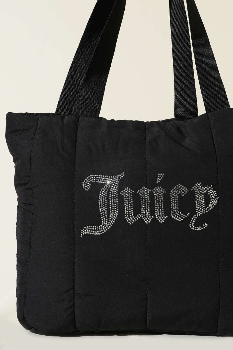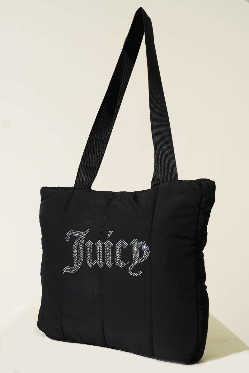 Juicy Yazılı Kristal Taş Detaylı Şişme Omuz Çantası Siyah