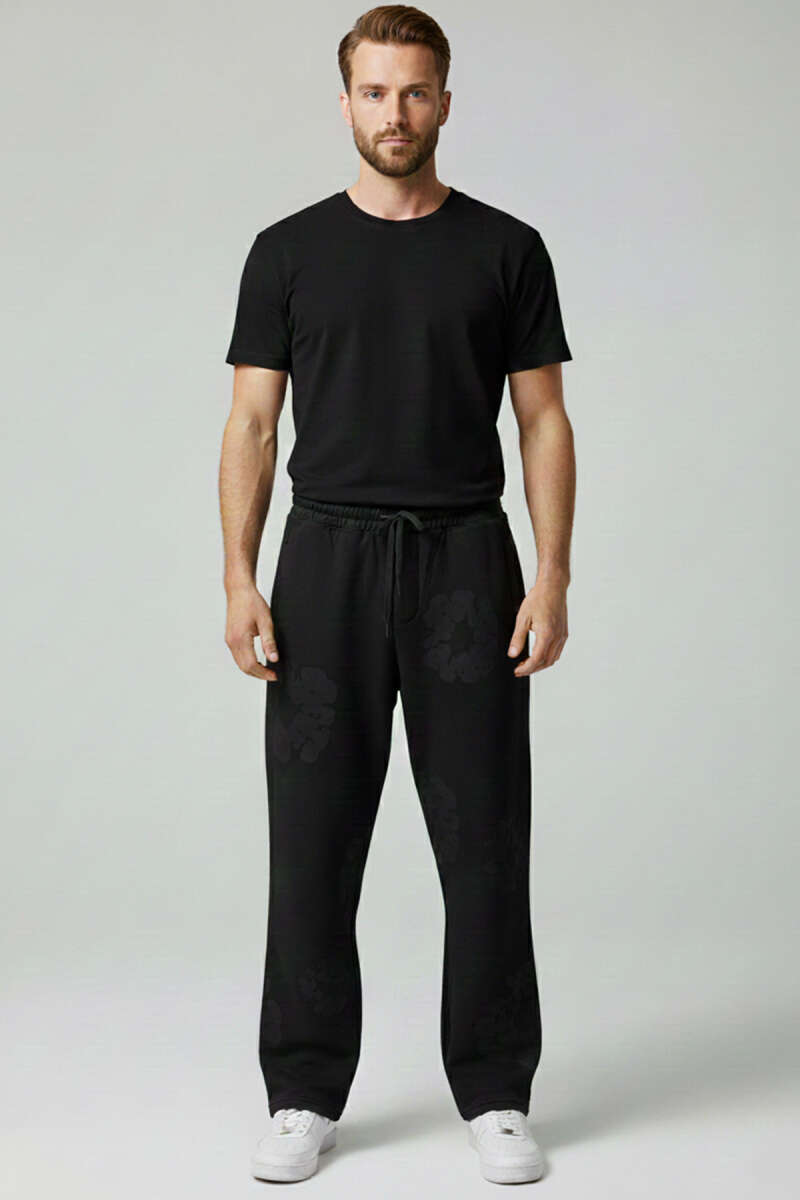 Loyşa Bel Bağcıklı Likralı Erkek Eşofman Altı Siyah