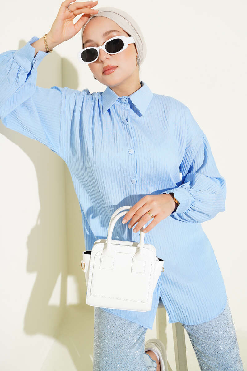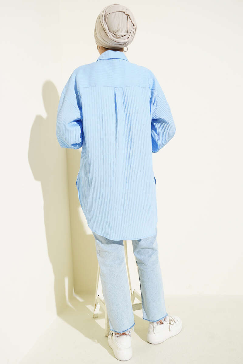 Kabartma Çizgili Bilek İpli Gömlek Bebe Mavi