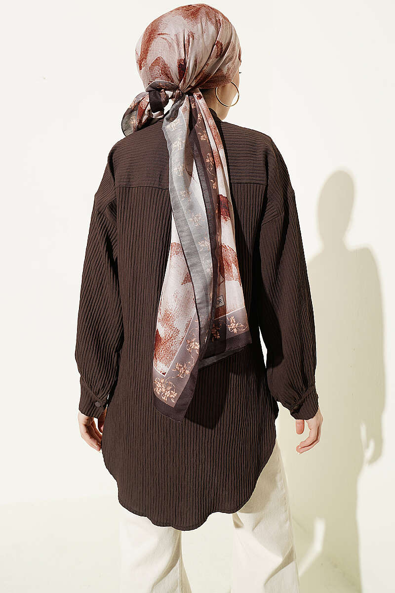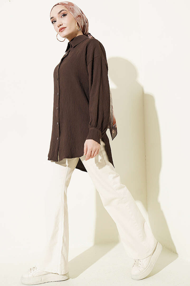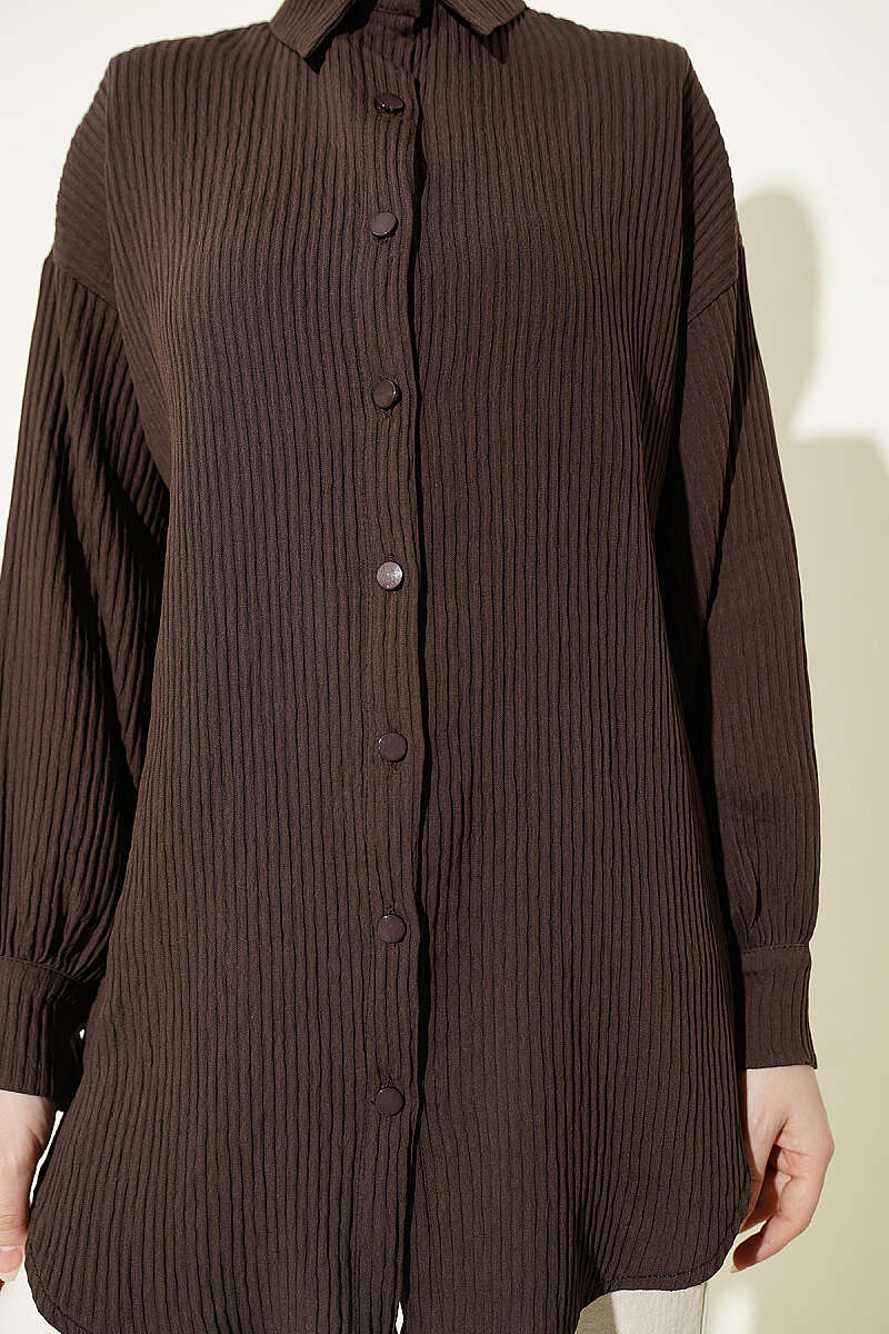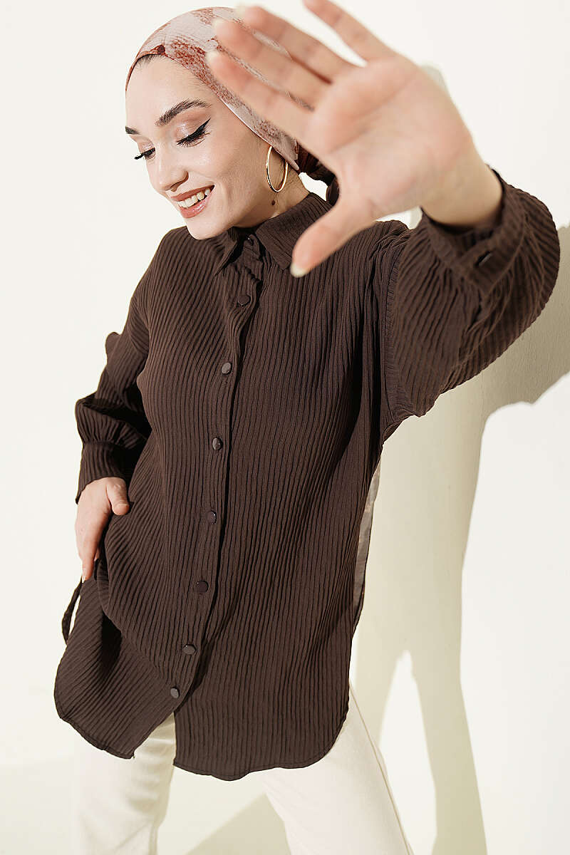 Kabartma Çizgili Bilek İpli Gömlek Kahve