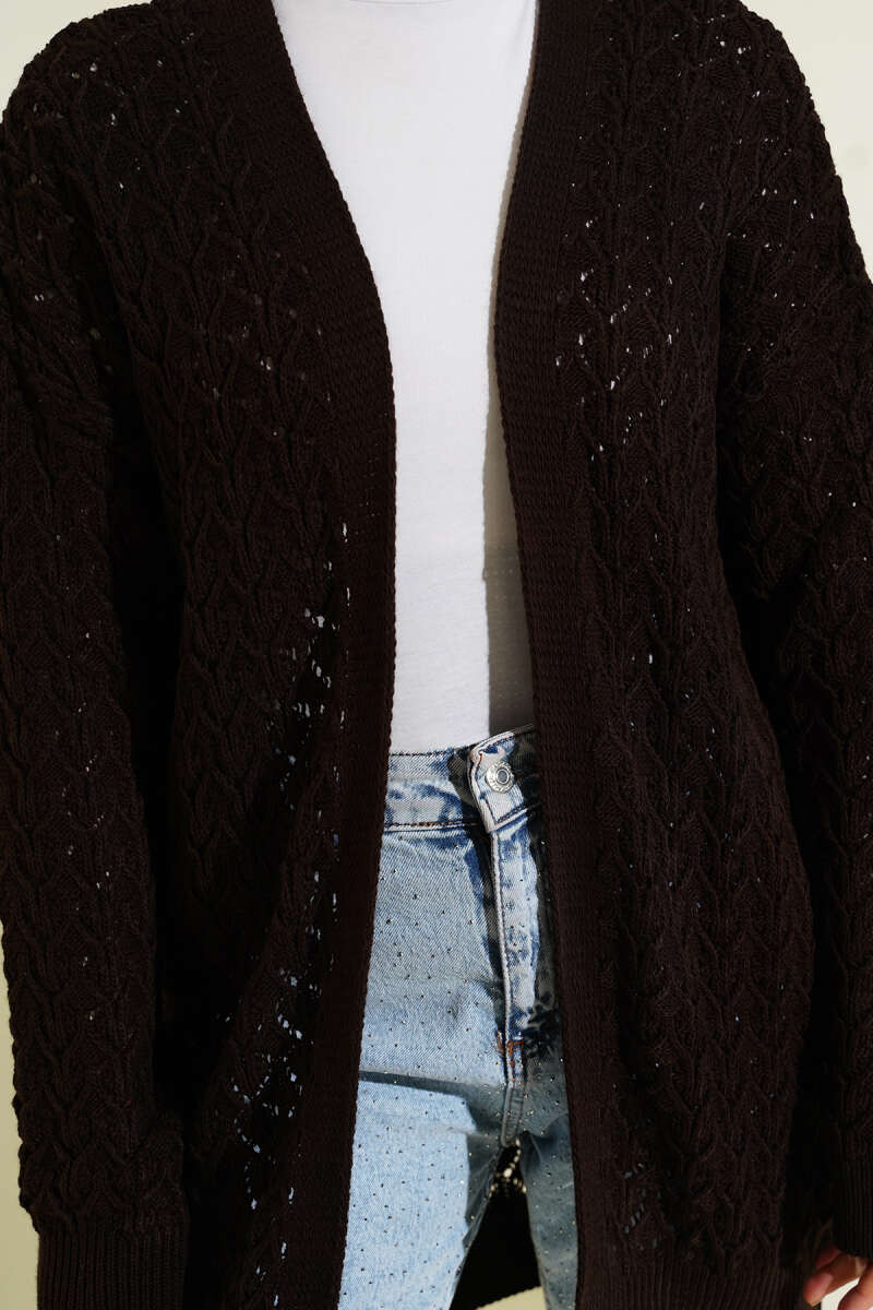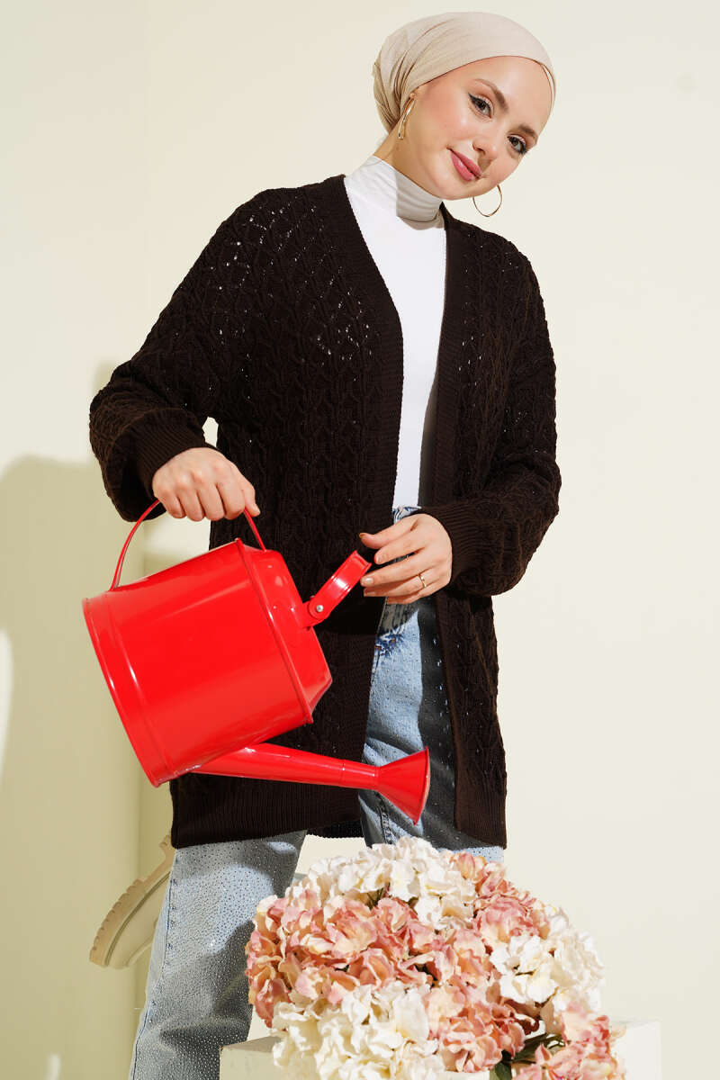 Kabartma Desen Araboy Triko Hırka Kahve