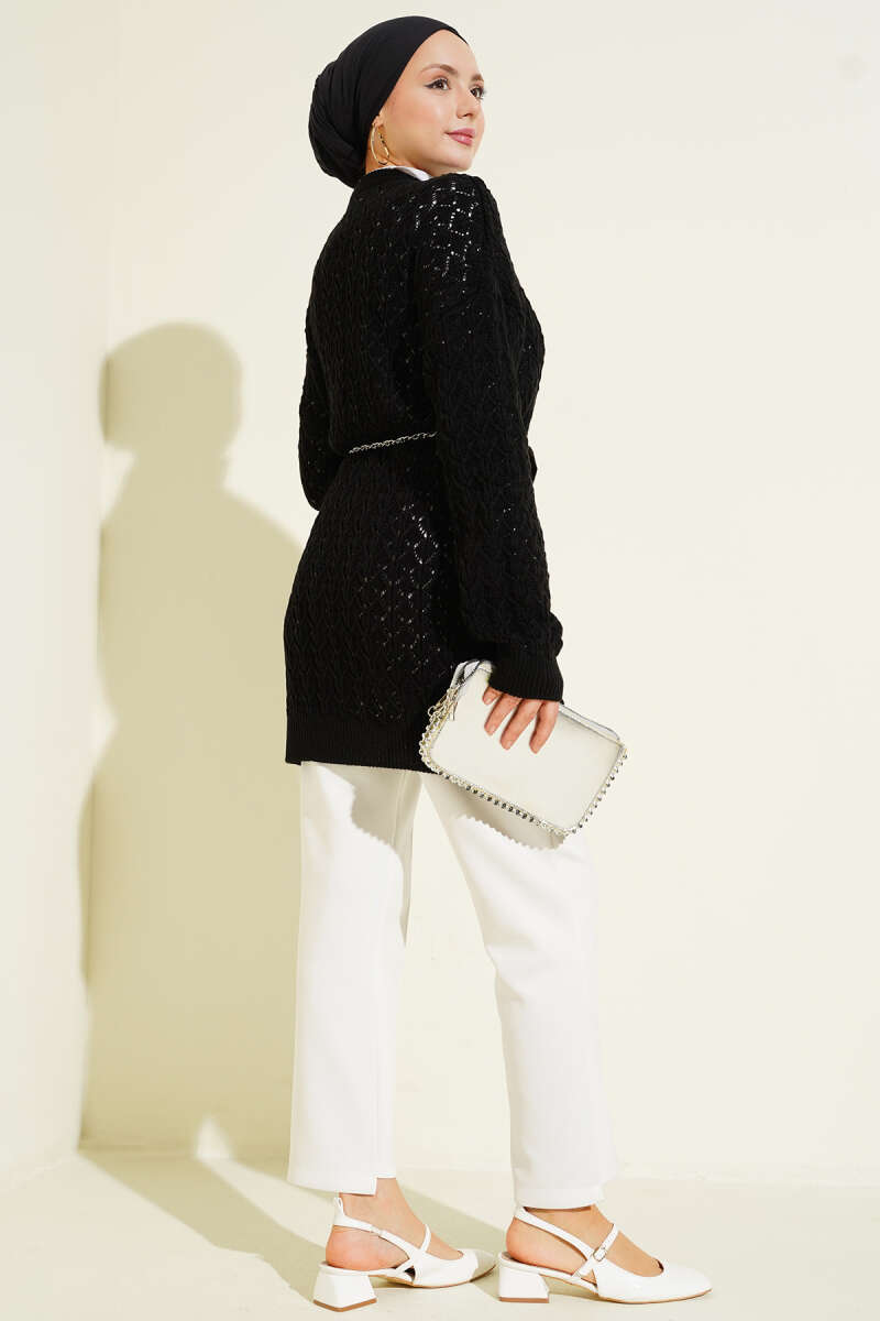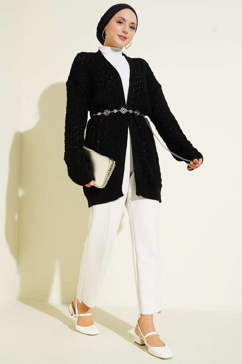 Baklava Desen Düğmeli Triko Hırka Siyah