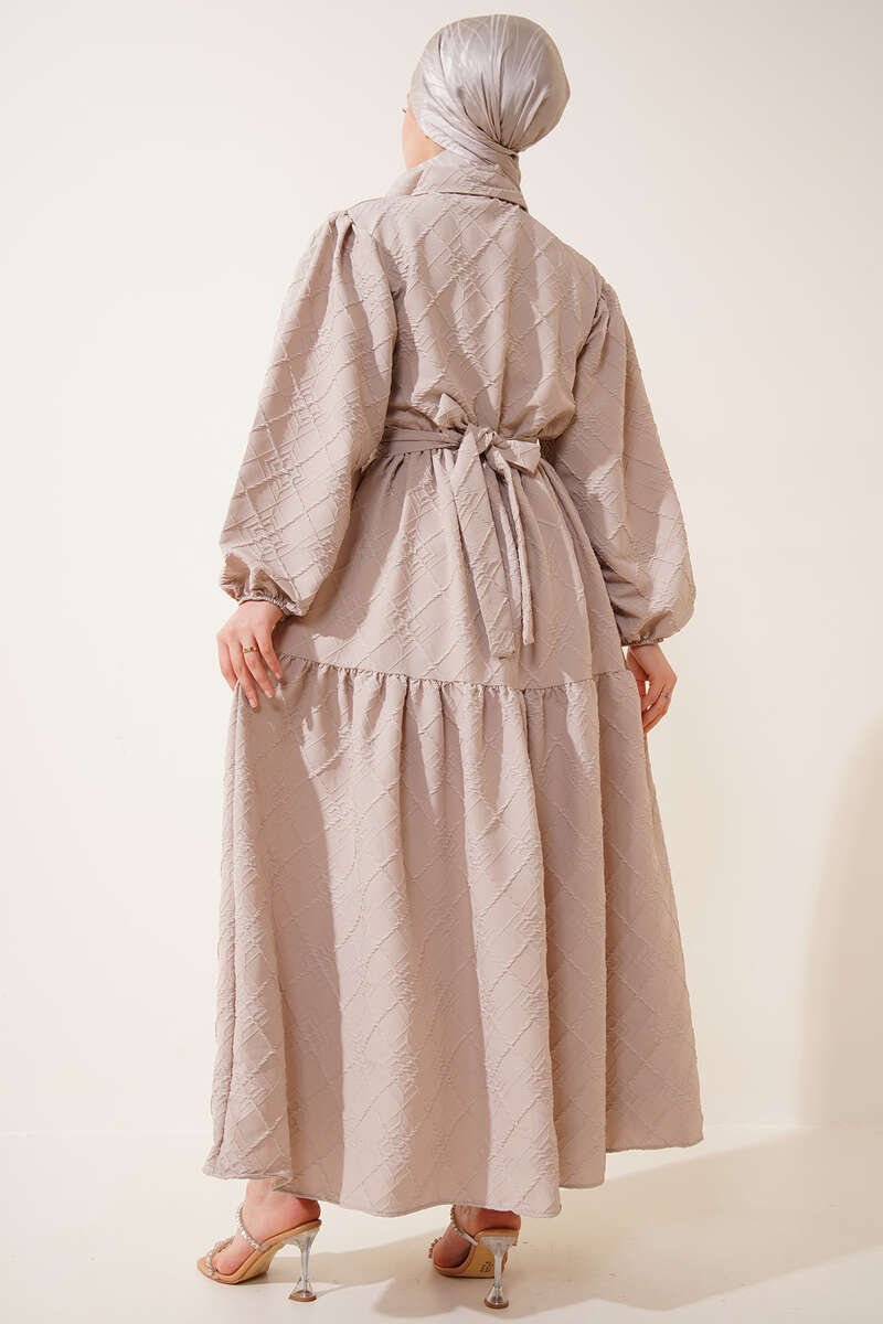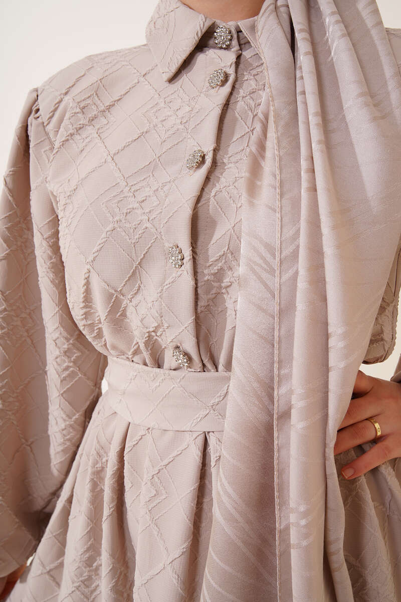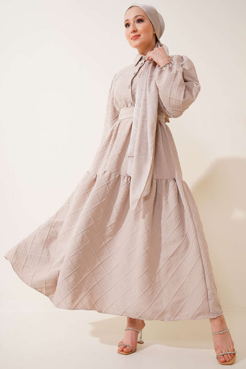 Kabartma Desen Elbise Bej