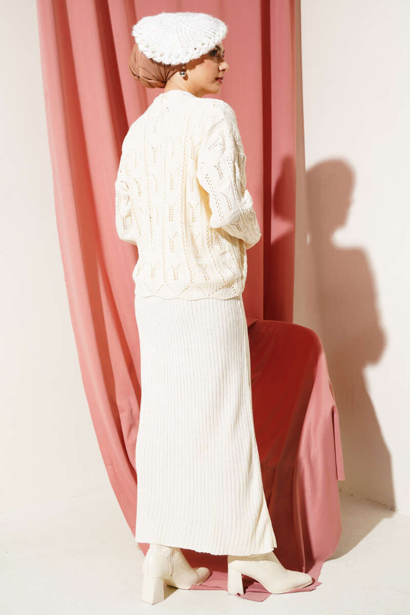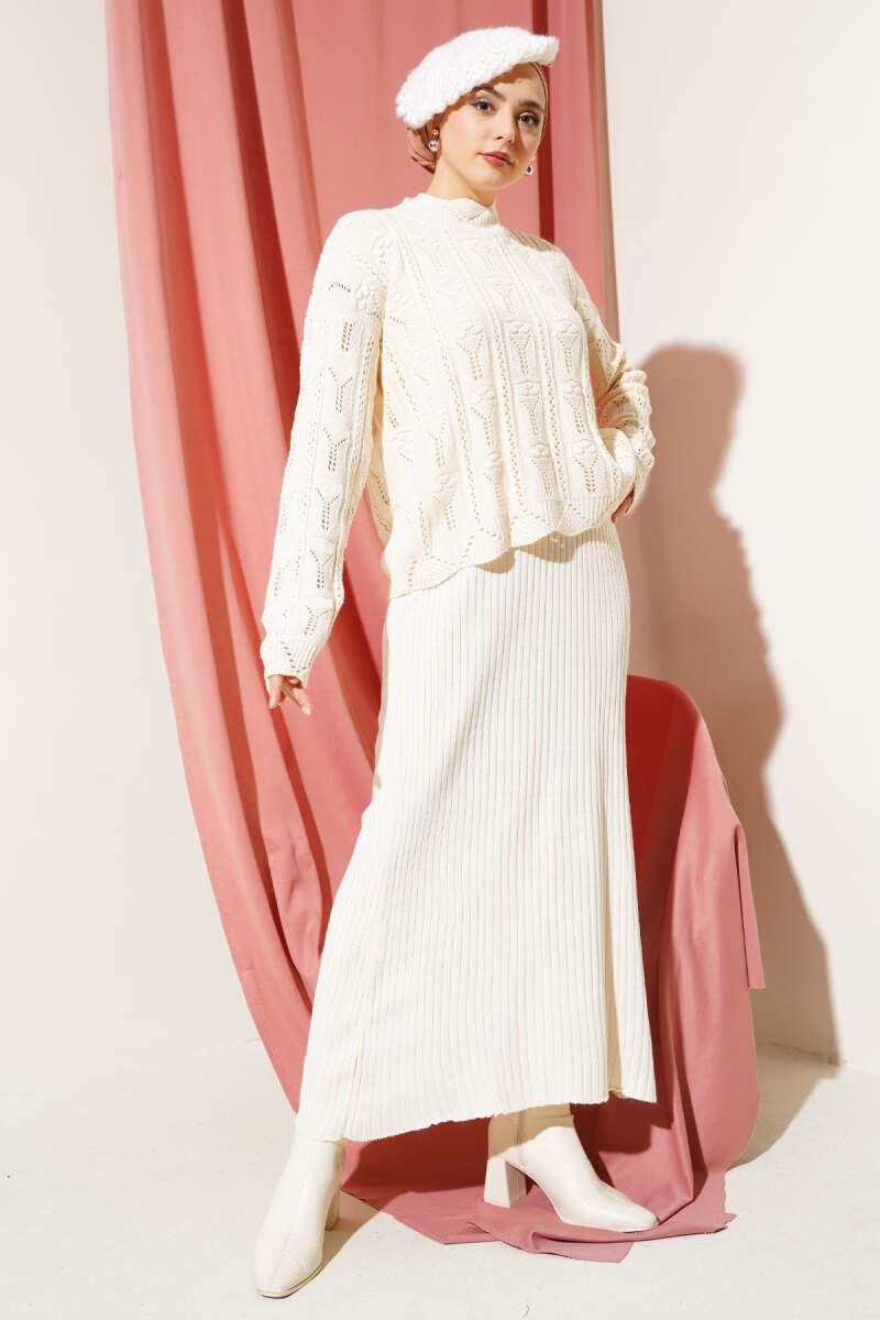 Balon Kol Balıkçı Yaka Triko İkili Takım Taş