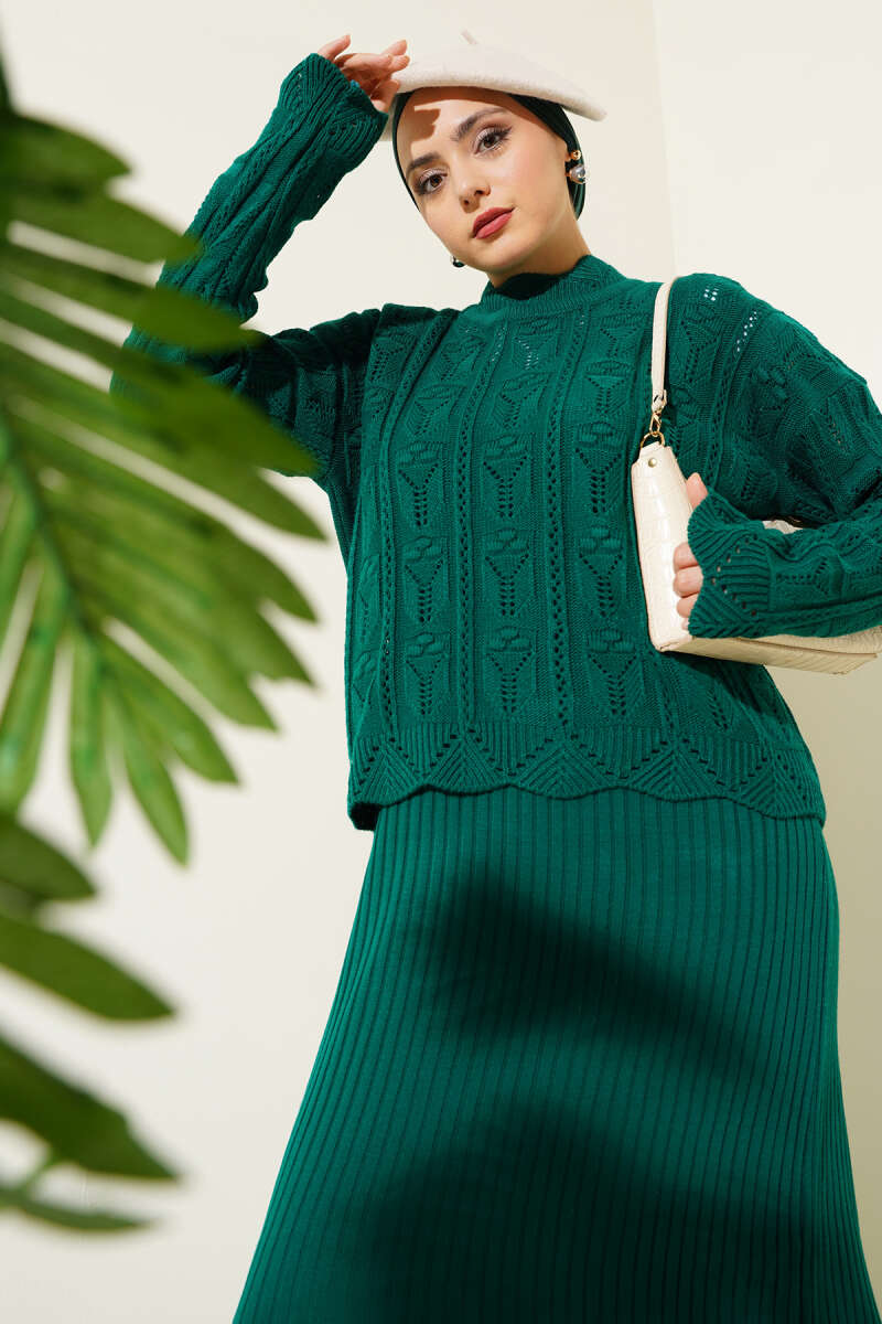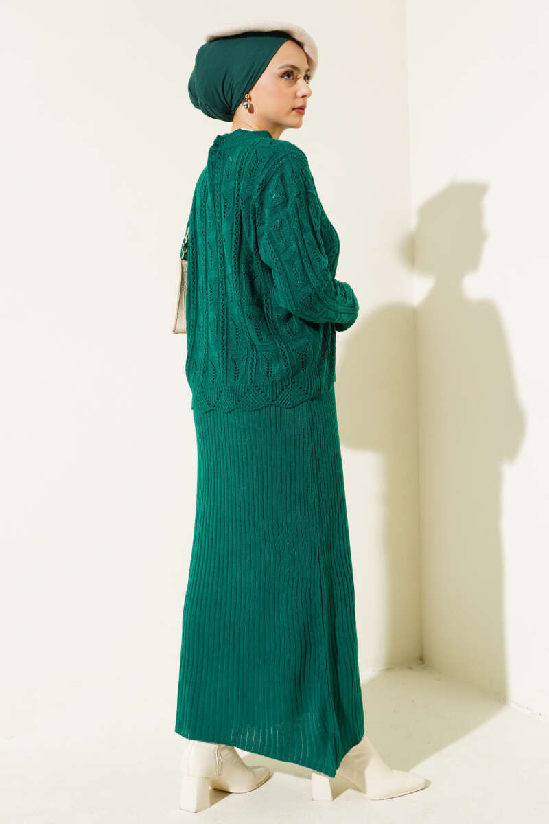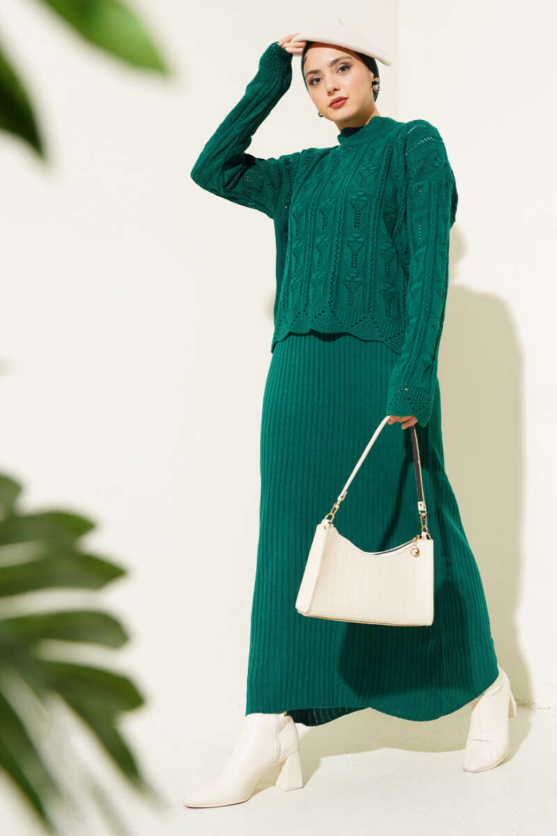 Kabartma Desen Triko Jile Elbise Takım Zümrüt