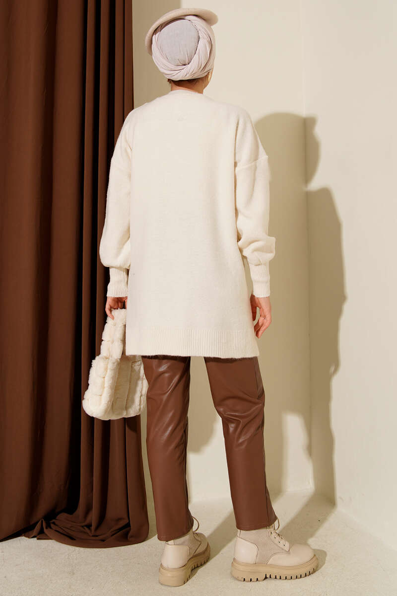 Alt Dikişli Yumoş Triko Tunik Ekru