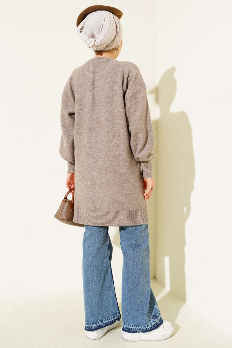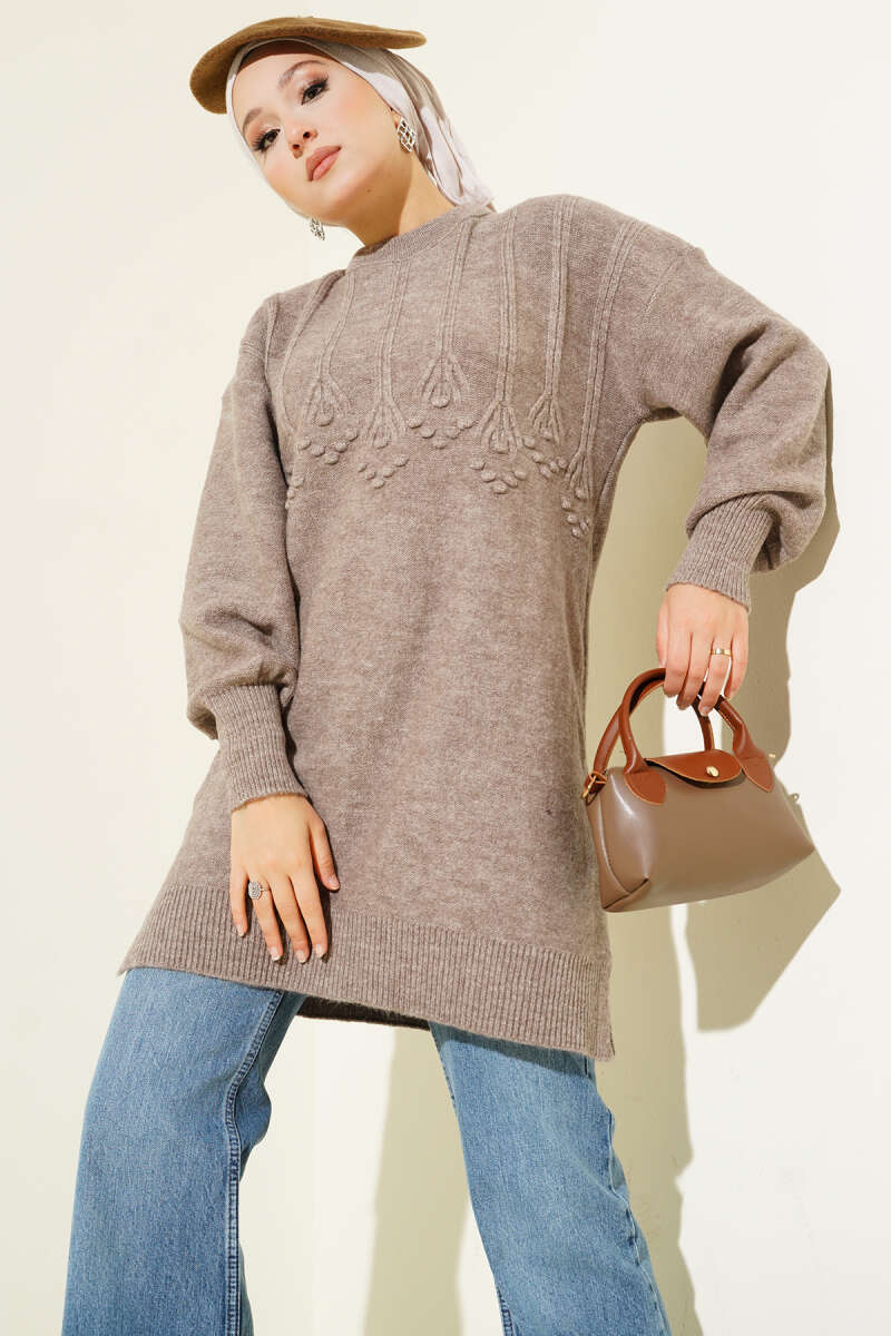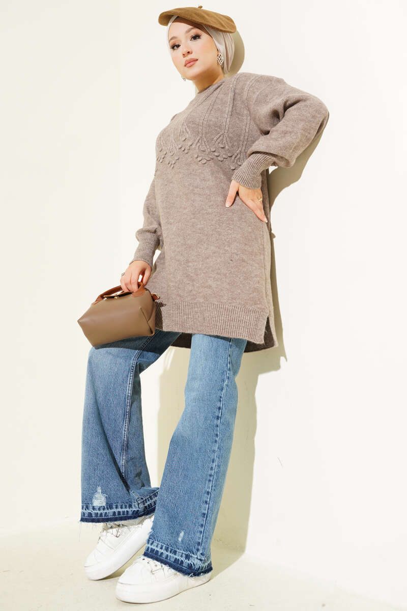 Örgü Kabartmalı Yumoş Triko Tunik Vizon