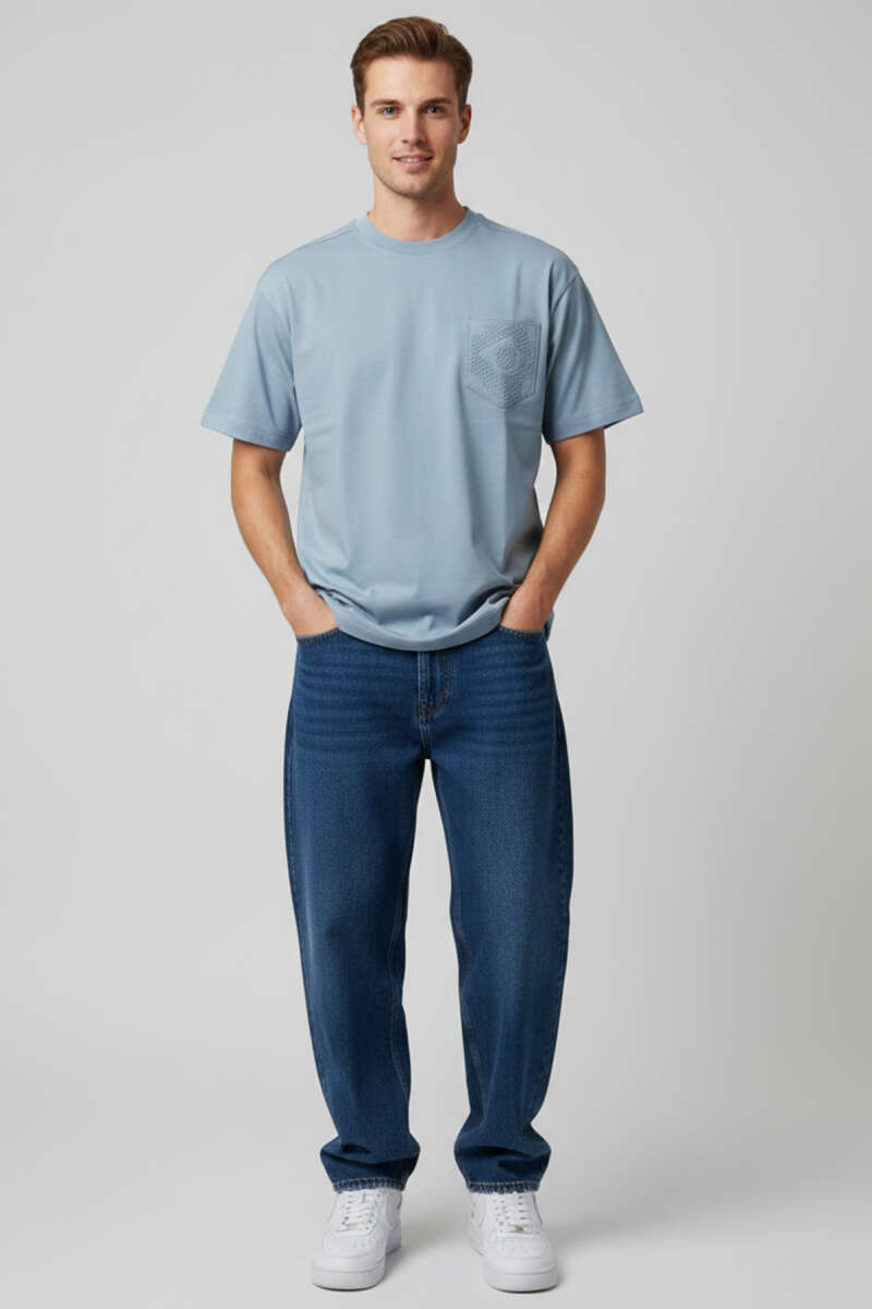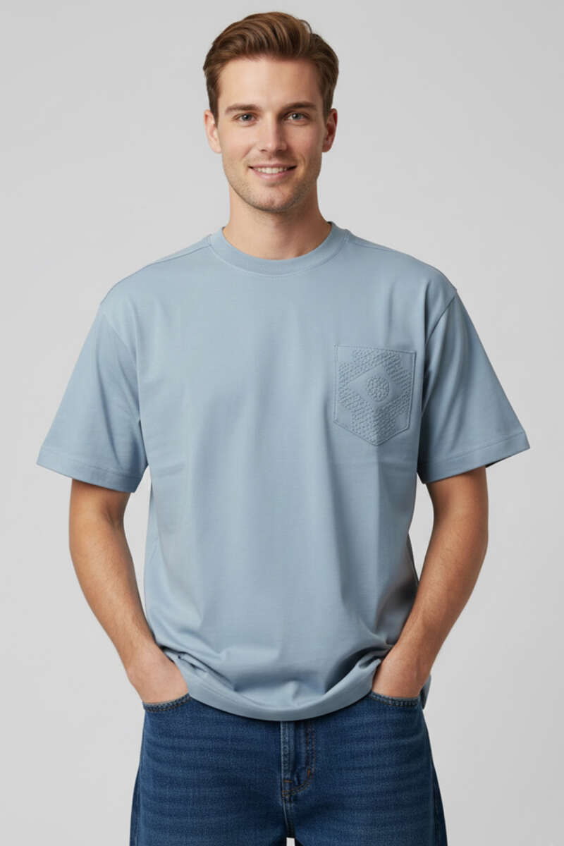 Kabartma Desenli Erkek T-shirt İndigo