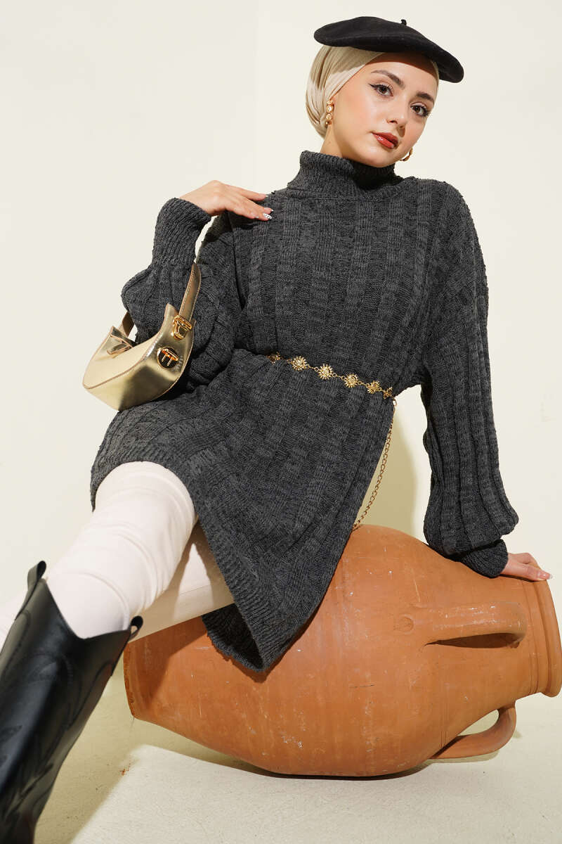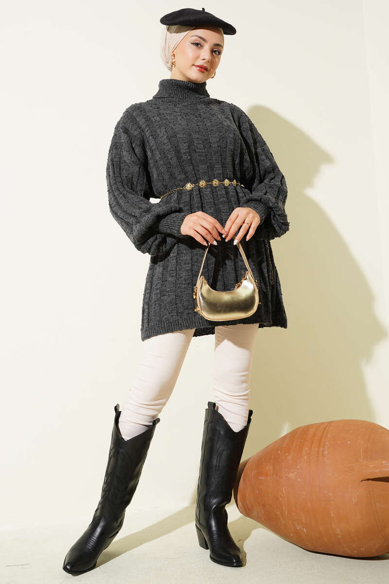 Bisiklet Yaka İp Kuşaklı Tunik Parlement