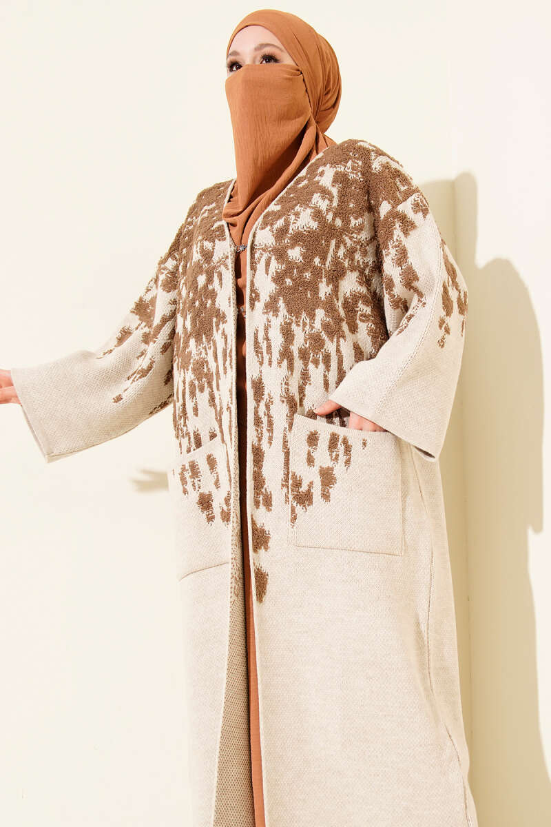 Kabartma Desenli Triko Uzun Hırka Latte
