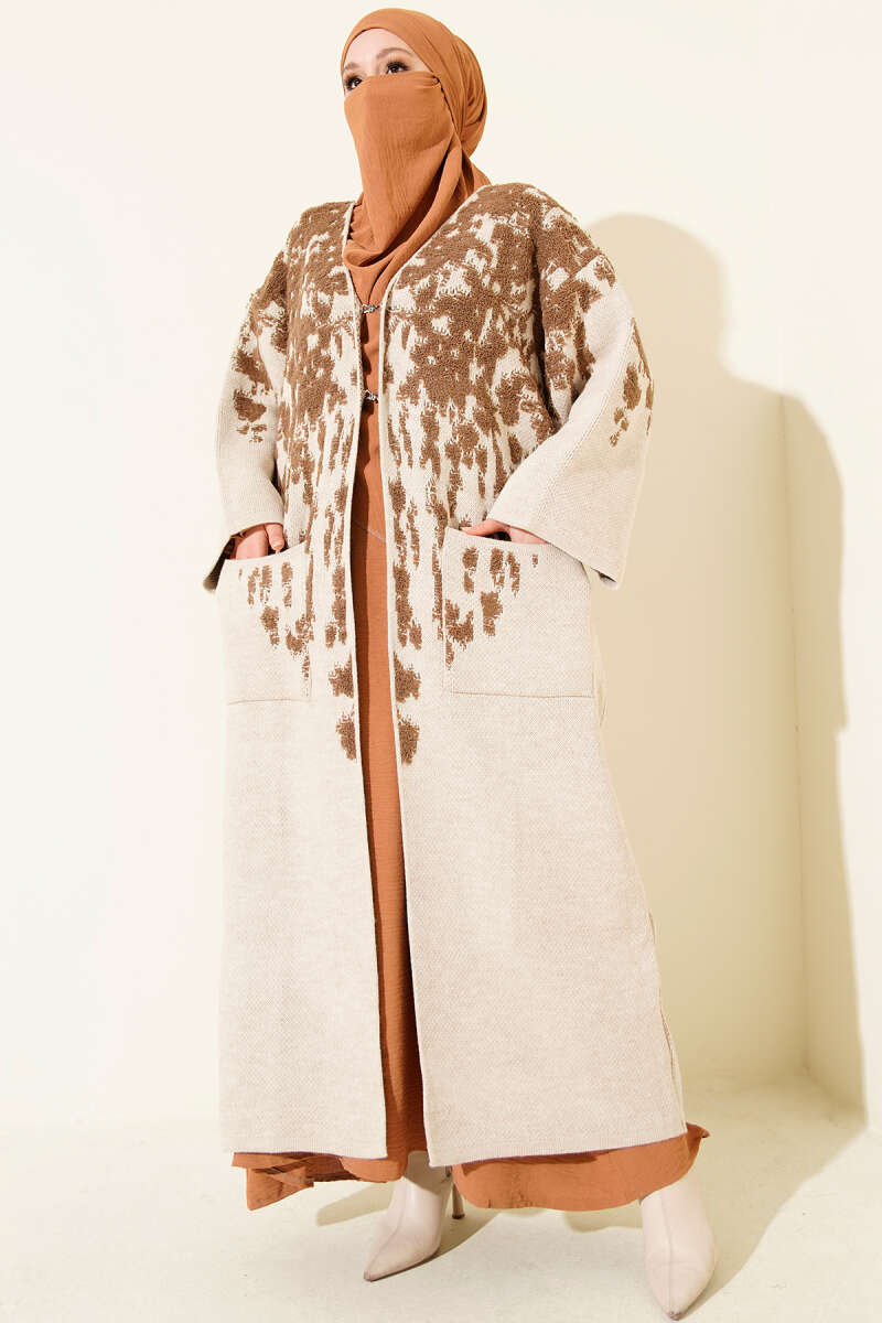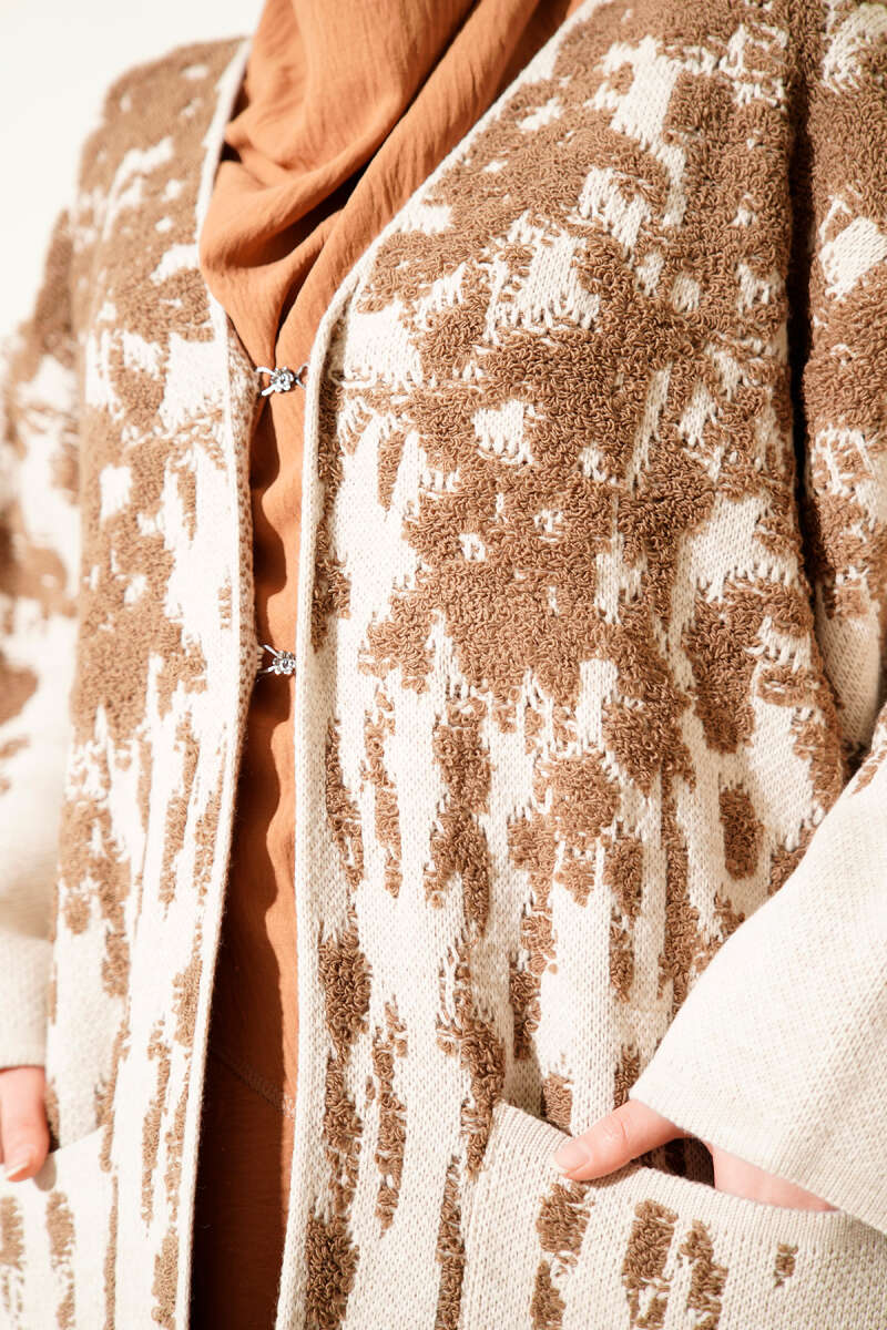 Baklava Desenli Ajurlu Triko Hırka Kahve