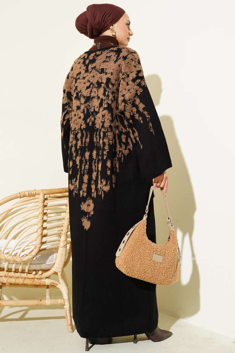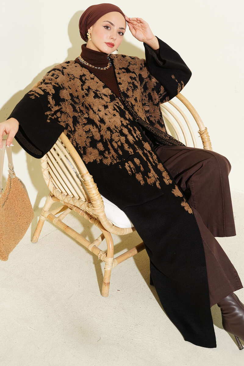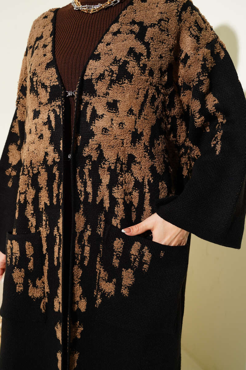 Kabartma Desenli Triko Uzun Hırka Acı Kahve