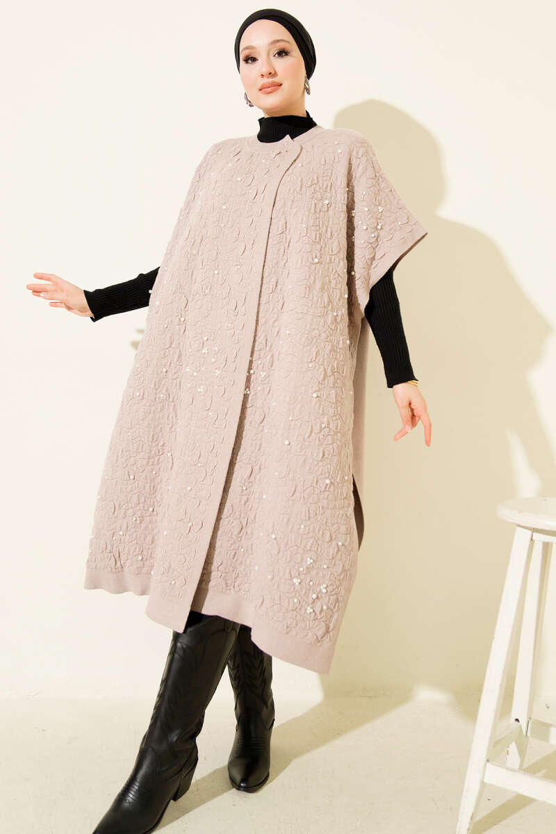 Kapüşonlu Triko Panço Latte