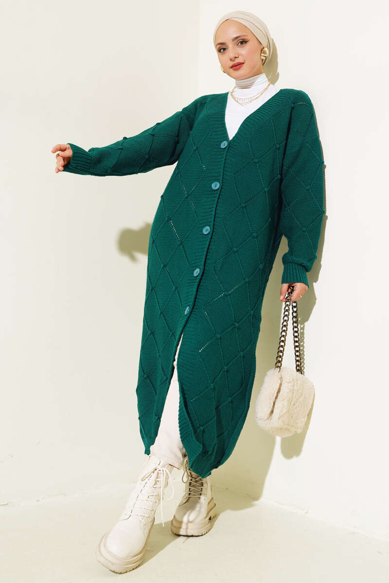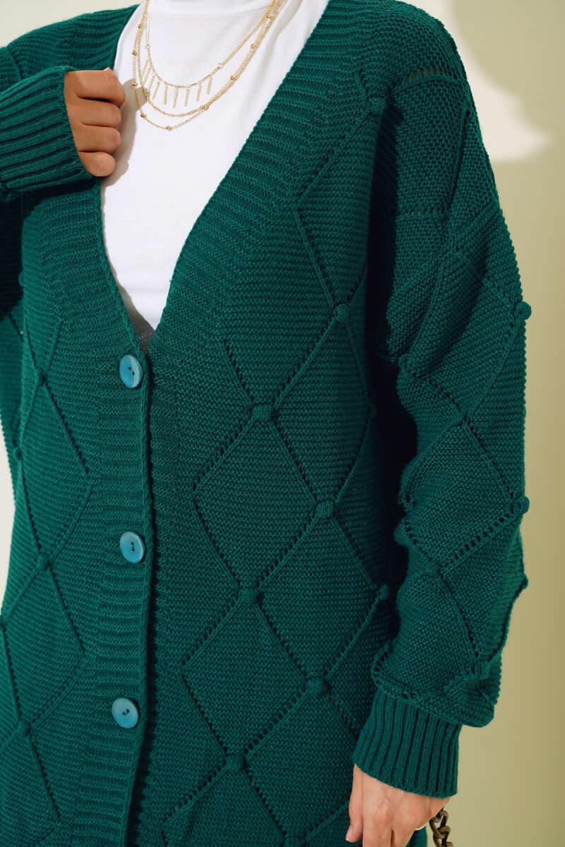 Pirinç Örgü Basic Triko Hırka Nar Çiçeği