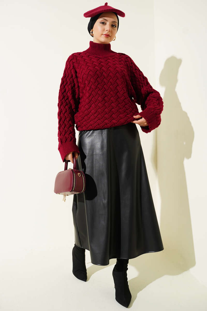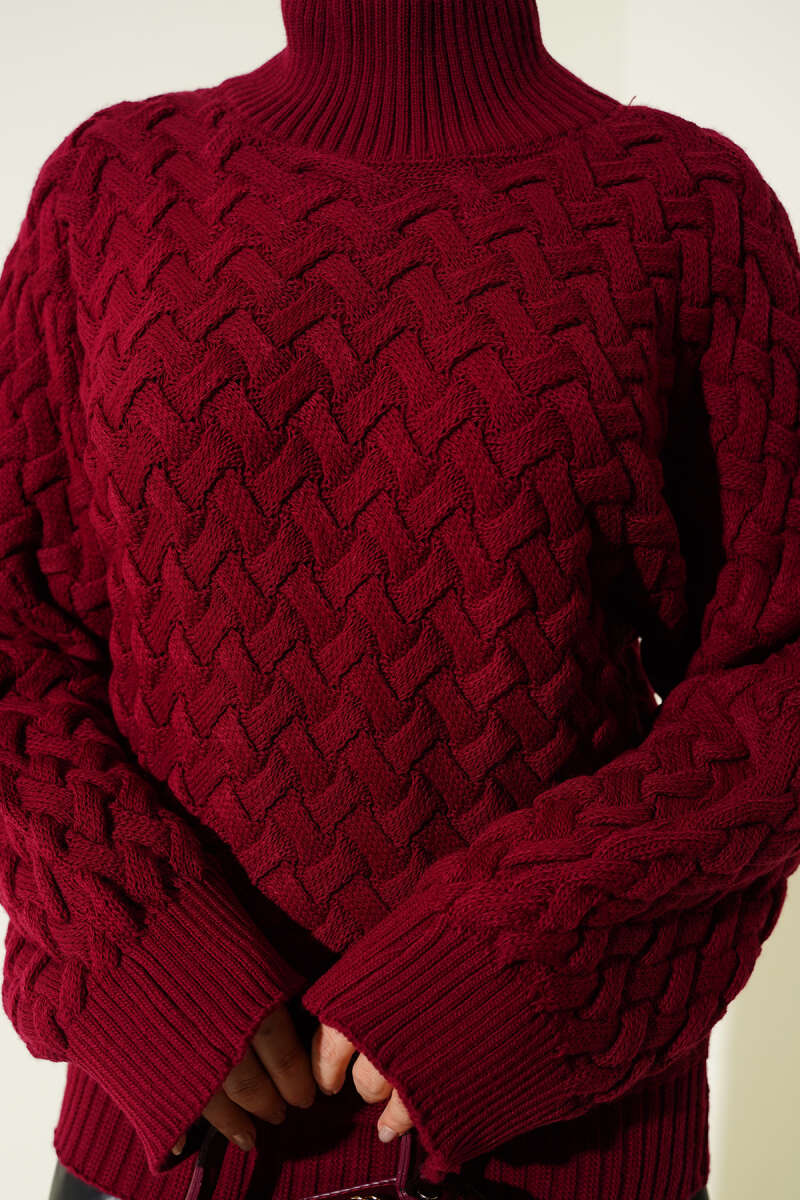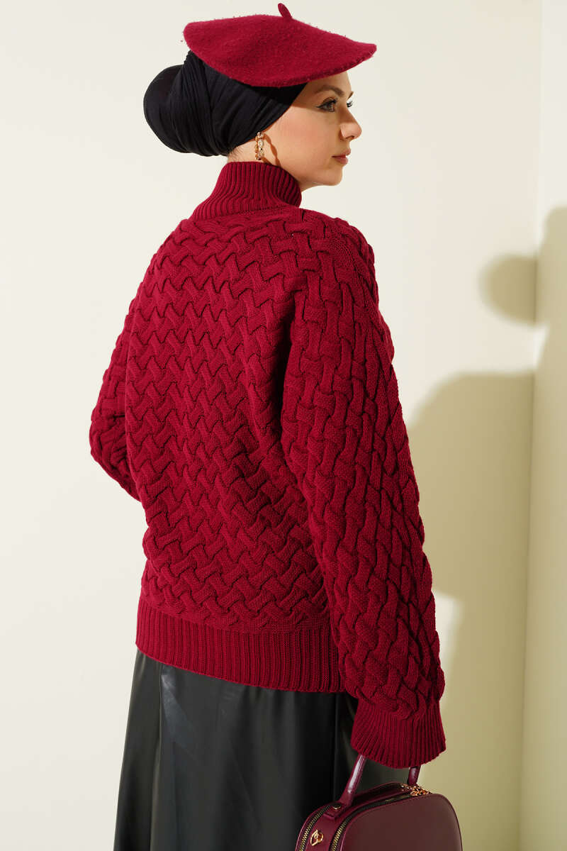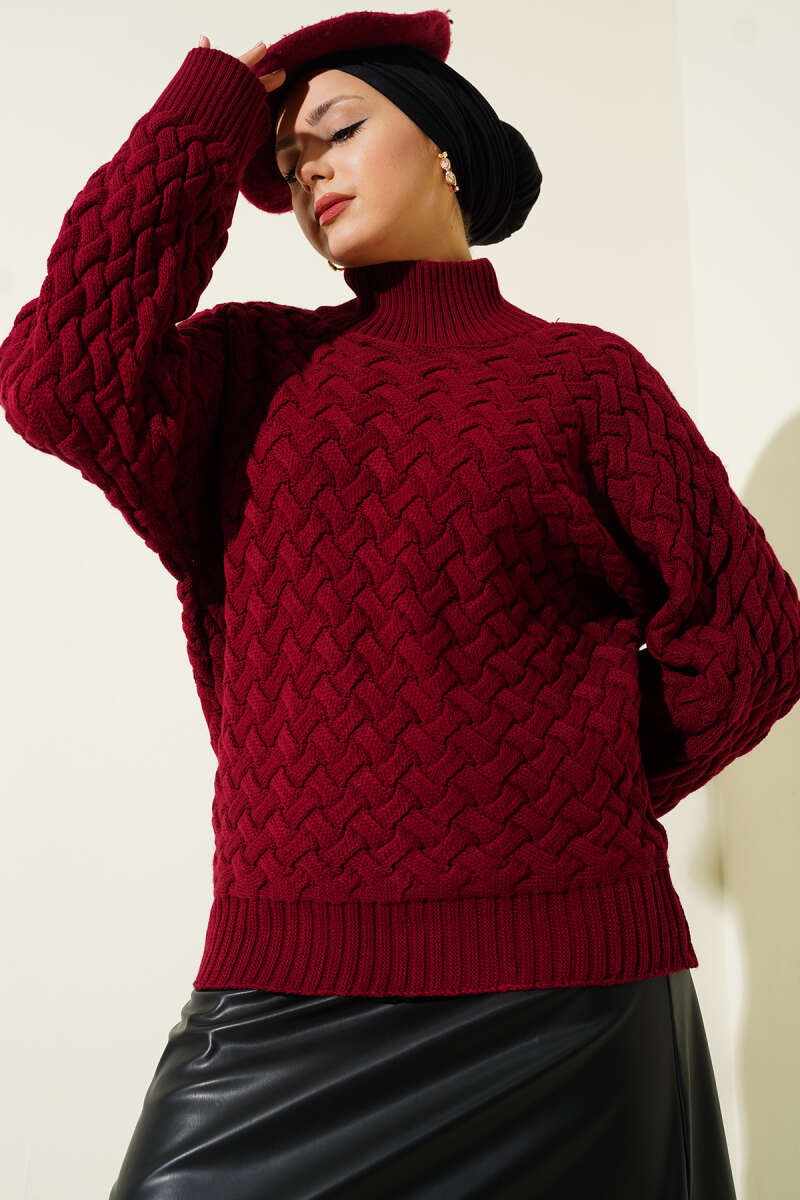 Kabartmalı Yarasa Kol Triko Kazak Gül Kurusu