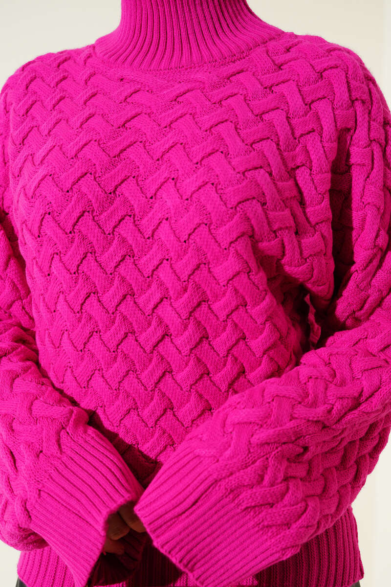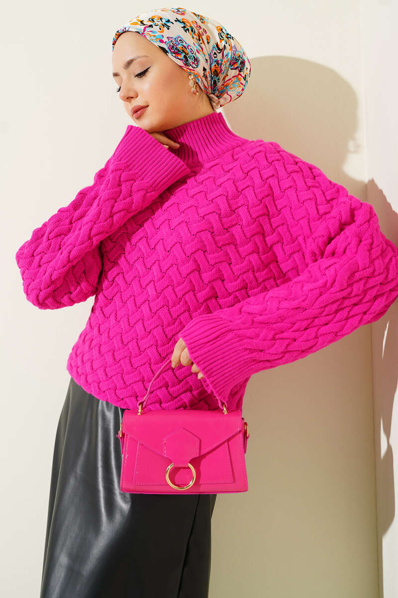 Yarasa Kol Dik Yaka Triko Kazak Pembe