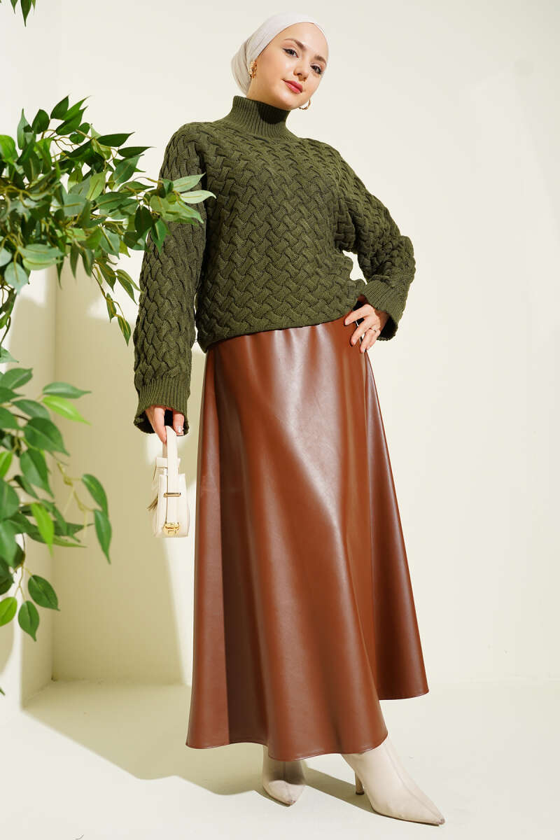 Kabartmalı Yarasa Kol Triko Kazak Kahve